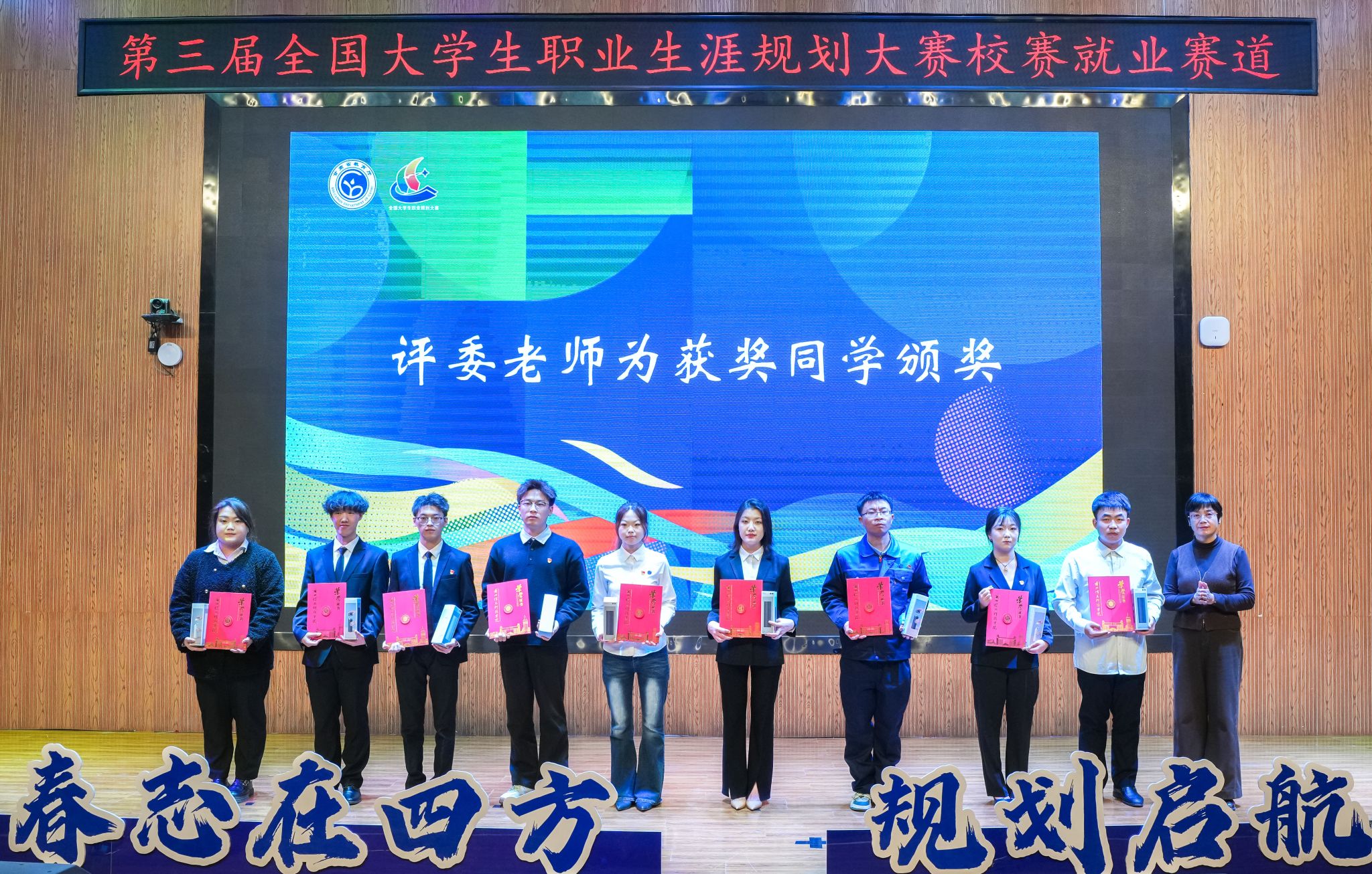 决赛现场,选手通过规划书陈述、情景问答和综合展示等环节,全面呈现个人职业探索成果,争夺金银铜奖项。就业赛道金奖获得者、健康工程学院学生杨丹赛后分享道:“比赛让我系统梳理了自身优势与职业方向,评委的指导加深了我对行业的认识。”