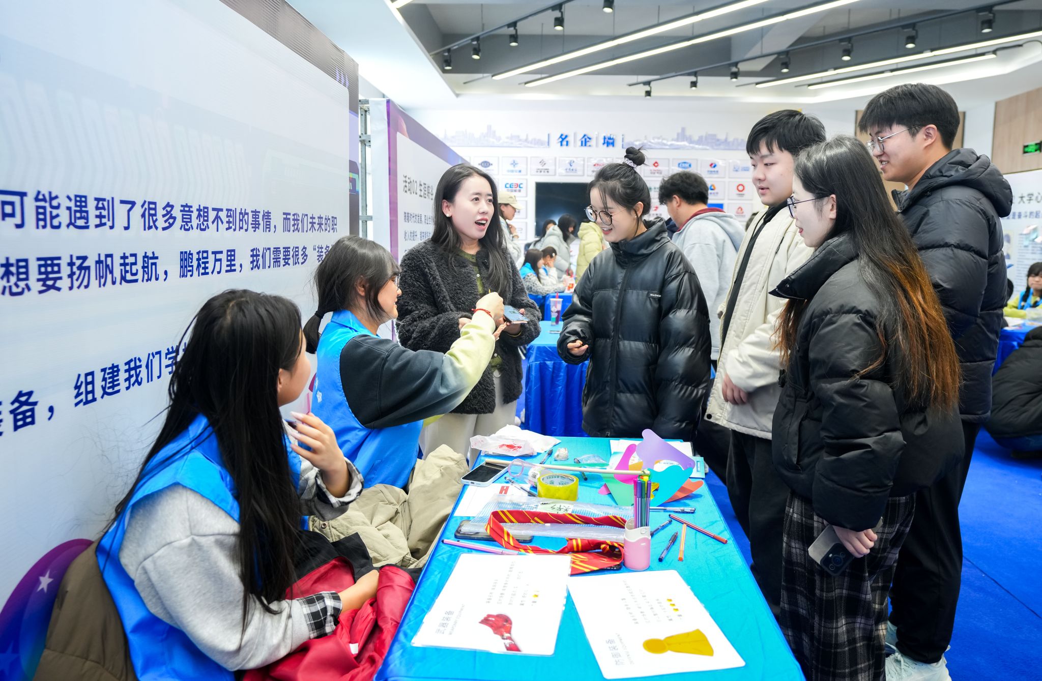 体验周围绕“生涯意识唤醒、自我深度认知、职业环境探索、决策行动赋能”四大模块,设置了12项主题关卡。学生在“生涯段位”中初识定位,于“价值七巧板”中明晰追求;借助“热搜消消乐”洞察行业趋势,通过“大学心愿清单”规划成长路径。活动将生涯理论转化为可参与、可感知、可打卡的实体化任务,引导学生在互动中思考未来,在体验中探索方向。“之前我对未来很迷茫,但通过‘职业热搜榜’和‘行业情报站’两个环节,我真实地感受到了当前科技行业的发展脉搏,也明确了自己后续的学习重点。”计算机科学与技术专业的大三学生王同学分享道。大一的李同学则表示:“‘价值七巧板’让我第一次认真思考自己真正看重什么,这对刚入学的我来说是一次特别重要的自我觉察。”