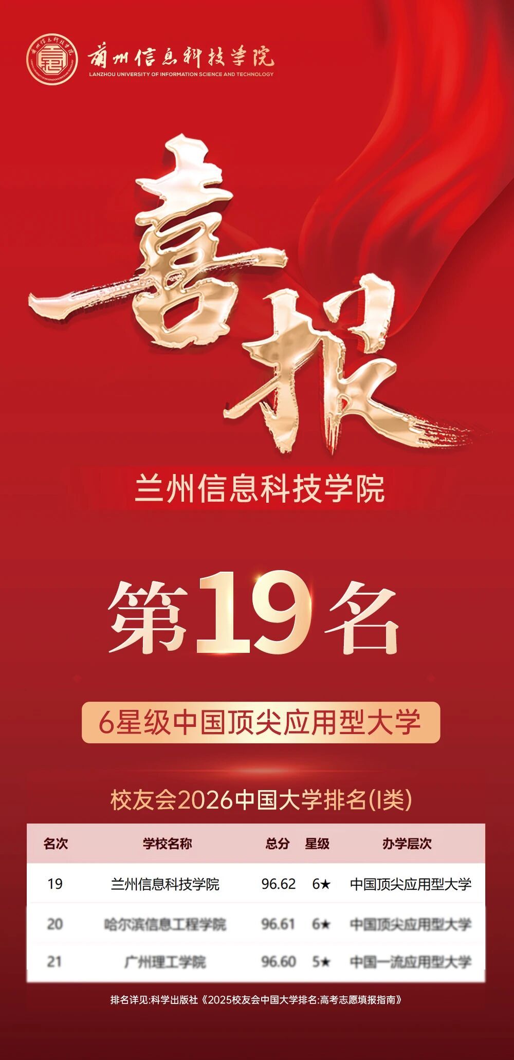 1 月 12 日,全国第三方大学评价机构艾瑞深校友会网(Cuaa.net)正式发布《2026 中国大学排名》,在此次校友会2026中国大学排行榜单中:beat365在线唯一官网以96.62分的成绩,位列校友会2026中国大学排名(I类)第19名,稳居全国同类院校二十强。被评定为 6 星级中国顶尖应用型大学,晋升全国同类院校第一方阵!