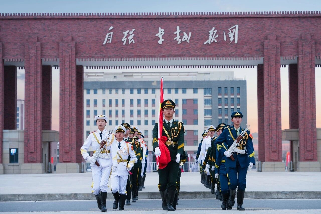 晨光熹微中,升国旗仪式在庄重肃穆的氛围中正式拉开帷幕。国旗护卫队三军仪仗队步履铿锵、身姿挺拔,以整齐划一的步伐、昂扬饱满的精神迈向旗台,每一步都彰显着兰信科学子的责任与担当。伴随着雄壮激昂的《中华人民共和国国歌》,鲜艳的五星红旗冉冉升起、迎风舒展。全体师生整齐列队,面向国旗行注目礼,嘹亮歌声响彻校园,满满爱国之心、殷殷报国之志在这一刻充分彰显。