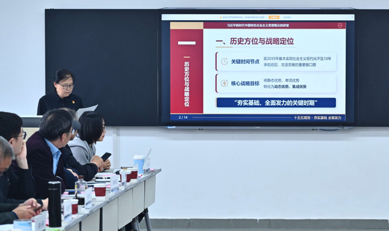 会议设置第一议题学习、专家专题讲座、教学经验分享、一体化建设交流等多个环节。会上,全体人员集体学习了习近平总书记《树立和践行正确政绩观》重要文章,明确以正确政绩观引领思政育人工作的根本方向。兰州交通大学蔡中宏教授作专题辅导,从理论高度和实践维度,系统讲解了两会精神与“十五五”规划融入思政课教学的路径方法,为破解教学融合难题提供专业指引。