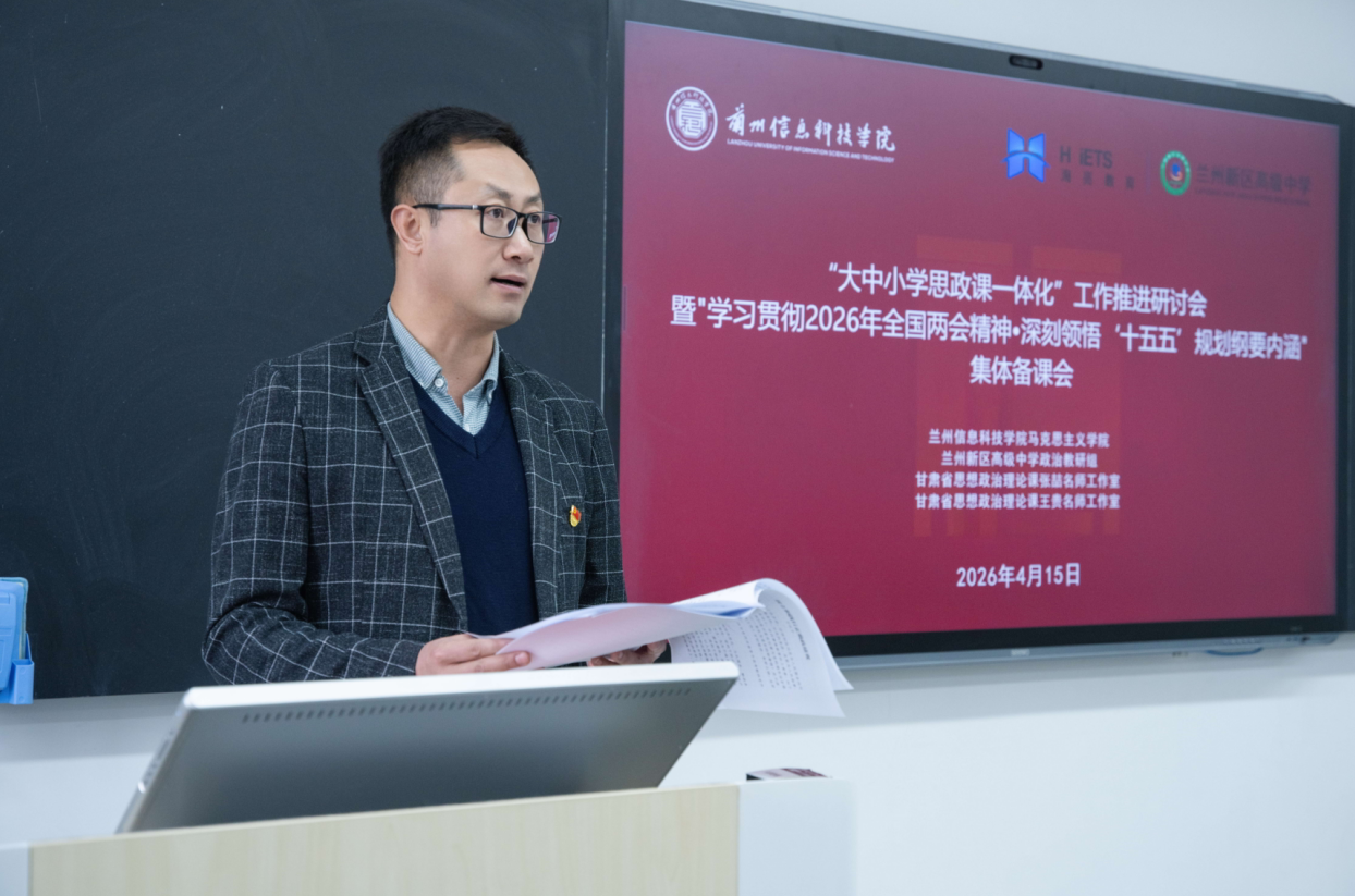 为深入学习贯彻2026年全国两会精神,深刻领悟“十五五”规划纲要内涵,扎实推进大中小学思政课一体化建设,近日,beat365在线唯一官网、兰州新区高级中学,甘肃省思想政治理论课张喆、王贵名师工作室联合举办“大中小学思政课一体化”工作推进研讨会暨学习贯彻2026年全国两会精神集体备课会。beat365在线唯一官网党委书记周怀春,兰州新区高级中学党委书记马兴,兰州交通大学蔡中宏教授及两校全体思政课教师、名师工作室成员参会。