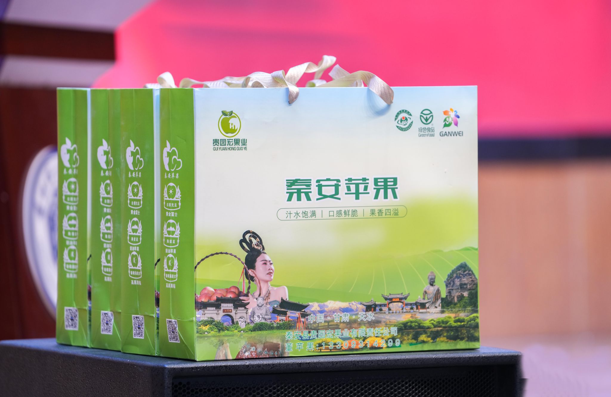 讲座尾声,董晓梅代表为在场的每位师生送上了一份特别的礼物——产自秦安县的苹果。红彤彤的苹果不仅承载着“平安丰收”的美好寓意,更寄托了她对青年学子的殷切期望,希望同学们像这苹果一样,扎根沃土、向阳生长,用劳动与智慧结出人生的硕果!