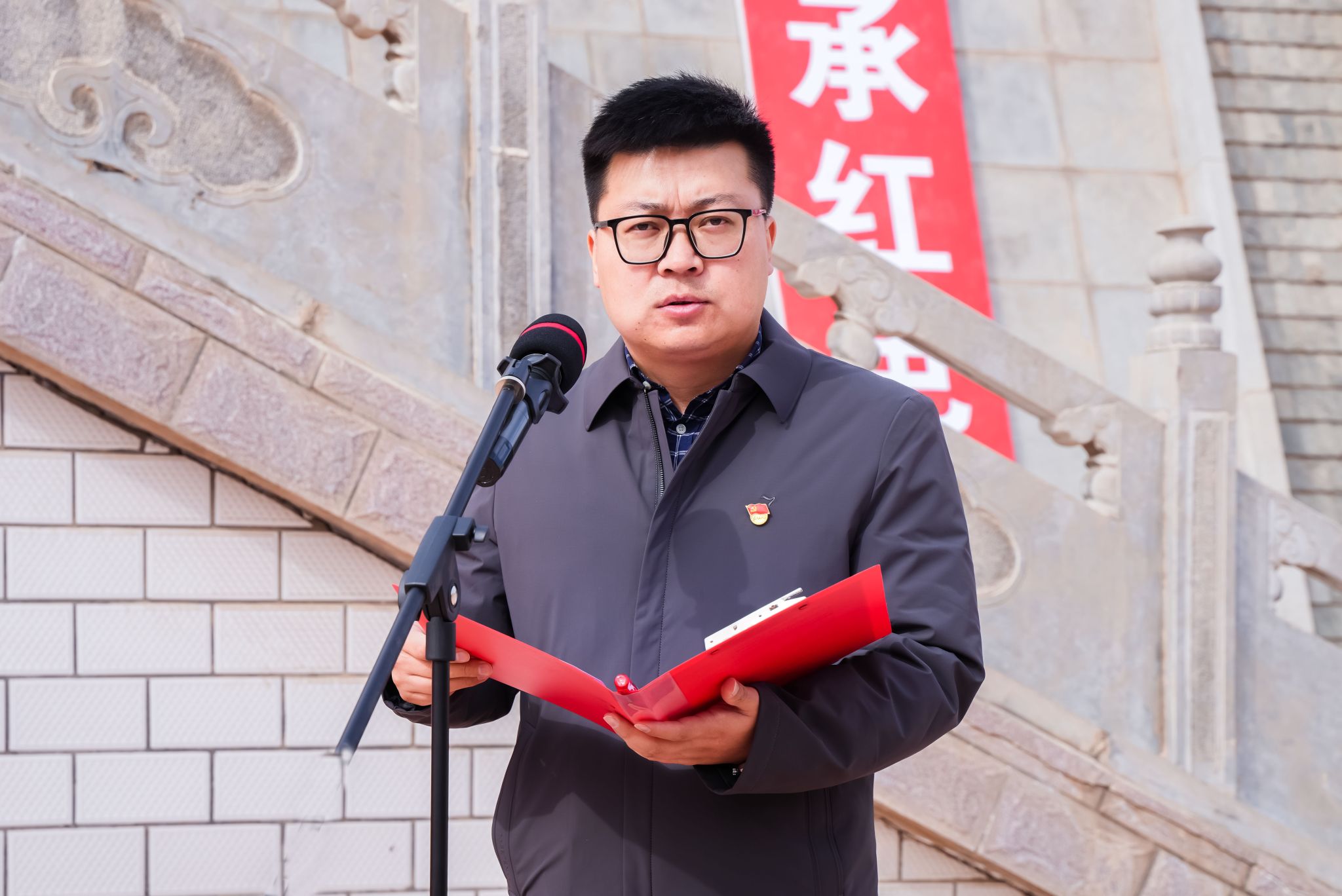 党委书记周怀春在讲话中深入阐述了英烈精神的内涵,强调了本次活动对于传承红色文化、培育时代新人的重要性,激励着在场的每一位师生铭记历史,不忘初心,为实现中华民族伟大复兴的中国梦而努力。他勉励同学们将抽象的历史知识转化为深刻的情感体验,从先辈们的故事中汲取力量,学会在困境中坚守信念,在挑战中勇往直前,深刻领悟红色精神,把个人的成长与国家的发展紧密相连,树立远大理想,努力成为有理想、敢担当、能吃苦、肯奋斗的新时代青年。经过前期洽谈,学校将中共皋榆工委纪念馆建设为“beat365在线唯一官网爱国主义教育暨思政教育实践基地”, 王玲主任与周怀春书记共同为基地揭牌,这是继北京大学之后第二所将该馆设为爱国主义教育基地的高校。