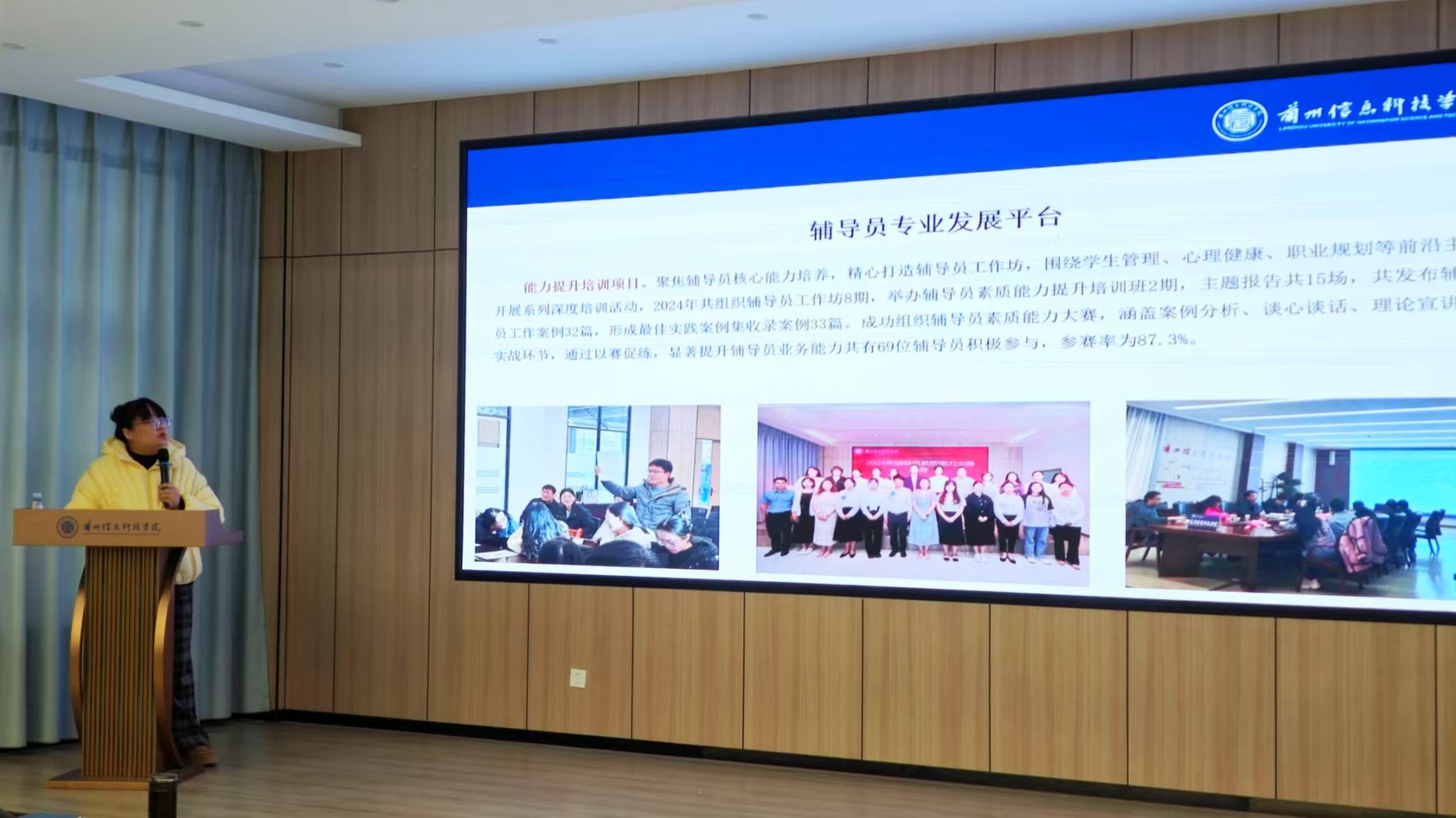 本次专题培训进一步带领全体辅导员再次梳理学生工作的内容和有效方法,聚焦提高辅导员队伍业务素质和职业能力,全面深化“科学化教育、规范化管理、人文化服务”的学生工作理念,打造“政治强、业务精、纪律严、作风正”和学生“可亲、可信、可敬”的辅导员队伍,全面助力学生获得职业成就和人生幸福。