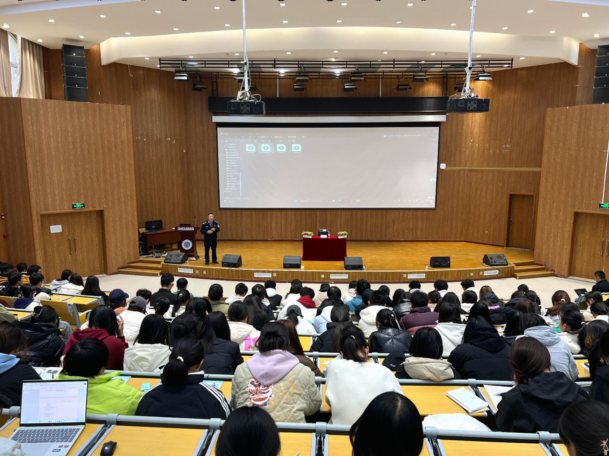 为深入贯彻总体国家安全观,增强师生国家安全意识,提高维护国家安全的能力,11月12日,beat365在线唯一官网邀请兰州新区公安局国内安全保卫大队大队长王道文来校开展“聚焦国家安全,守护国家未来”国家安全教育主题讲座。此次讲座吸引了400多名师生踊跃参与,现场气氛热烈。