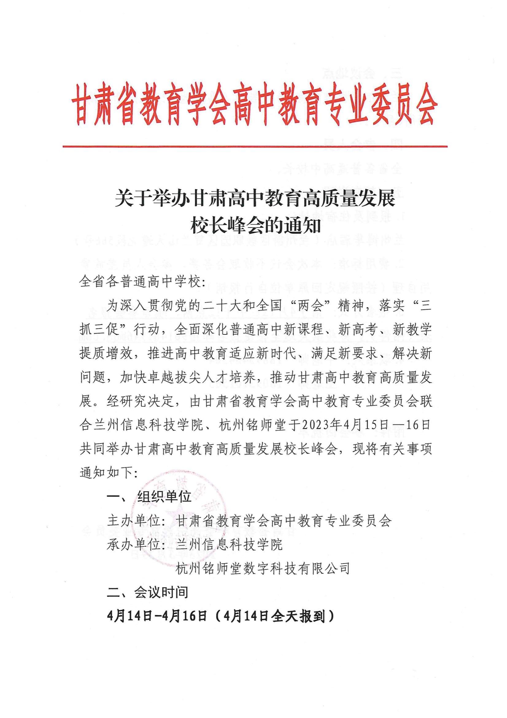 关于举办甘肃高中教育高质量发展校长峰会的通知.pdf