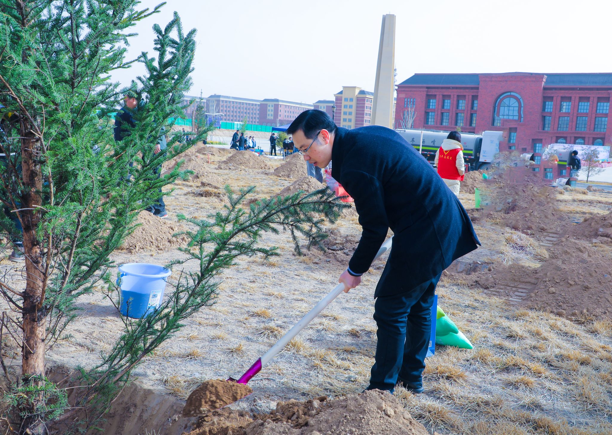 植树志愿活动由基建后勤处和校团委主办,机电工程学院团总支、材料与化工工程学院团总支承办,活动以线上报名的方式邀请师生参与到爱校荣校,绿化校园的活动中来。在上午9点的植树启动仪式上,beat365在线唯一官网校长黄炜致词,副校长巴建坤介绍了爱心企业甘肃睿冠再生资源有限公司对此次植树活动捐赠情况的介绍,副校长郭筱磊和校长助理殷学丽分别向爱心企业代表和学校合作企业代表颁发了纪念品。