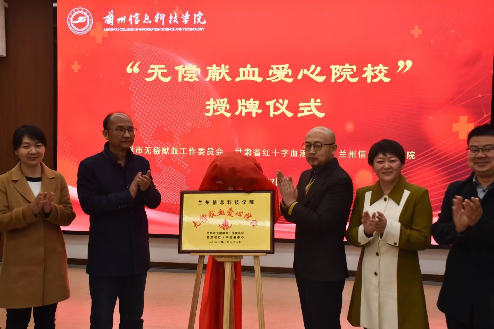 为表彰学校无偿献血工作的贡献,兰州市无偿献血工作委员会、甘肃省红十字血液中心决定授予学校“无偿献血爱心院校”称号。2023年4月7日上午,“无偿献血爱心院校”授牌仪式在106会议室隆重举行。甘肃省血液中心副主任李永铭、甘肃省血液中心招募科科长李娟、甘肃省血液中心招募科副科长龚娱霄、甘肃省血液中心招募科宣传讲师陈立霞、学校校长助理师帅,学生处、团委全体成员,各二级学院学生发展中心主任、团总支书记、全体辅导员,献血学生代表参加了仪式。