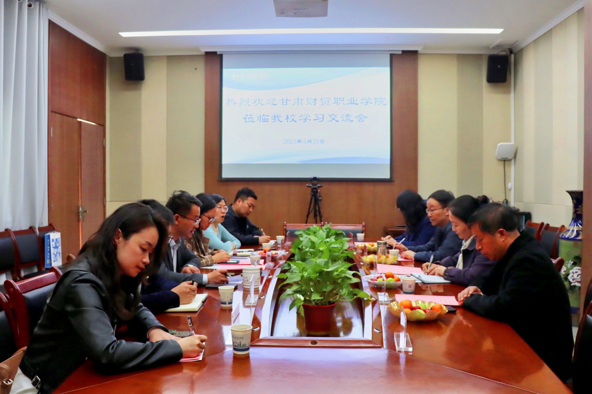 2023年3月20日,甘肃财贸职业技术学院副校长王秀玲一行前来beat365在线唯一官网交流调研并座谈。学院党委副书记、副校长郭筱磊,校长助理殷学丽等出席座谈会,相关部门负责人及二级学院院长参加会议。