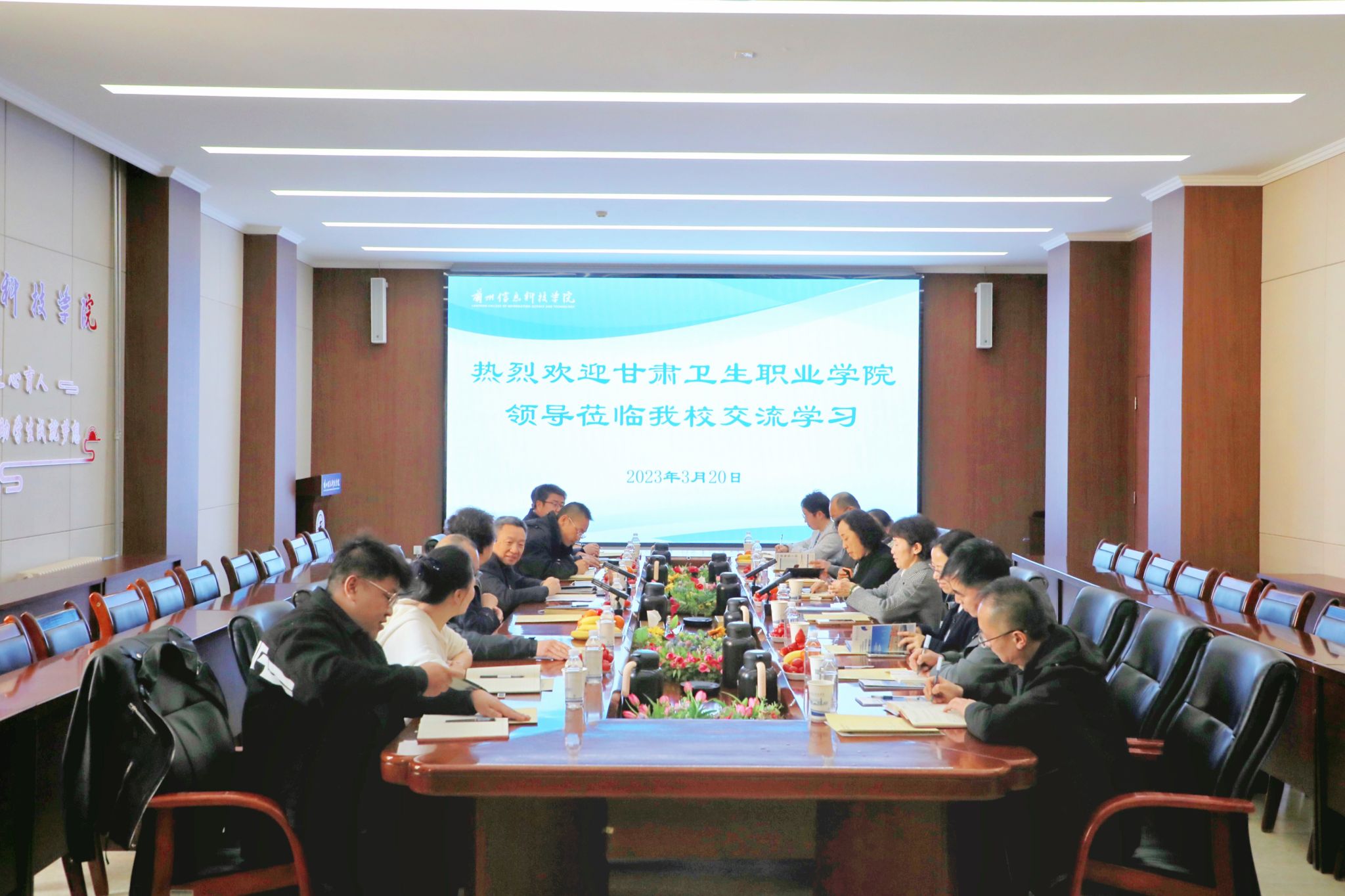 2023年3月20日,甘肃卫生职业学院校长任晖一行前来beat365在线唯一官网参观交流并座谈。学校党委书记周怀春,副校长巴建坤出席座谈会,学校相关部门负责人参加会议。