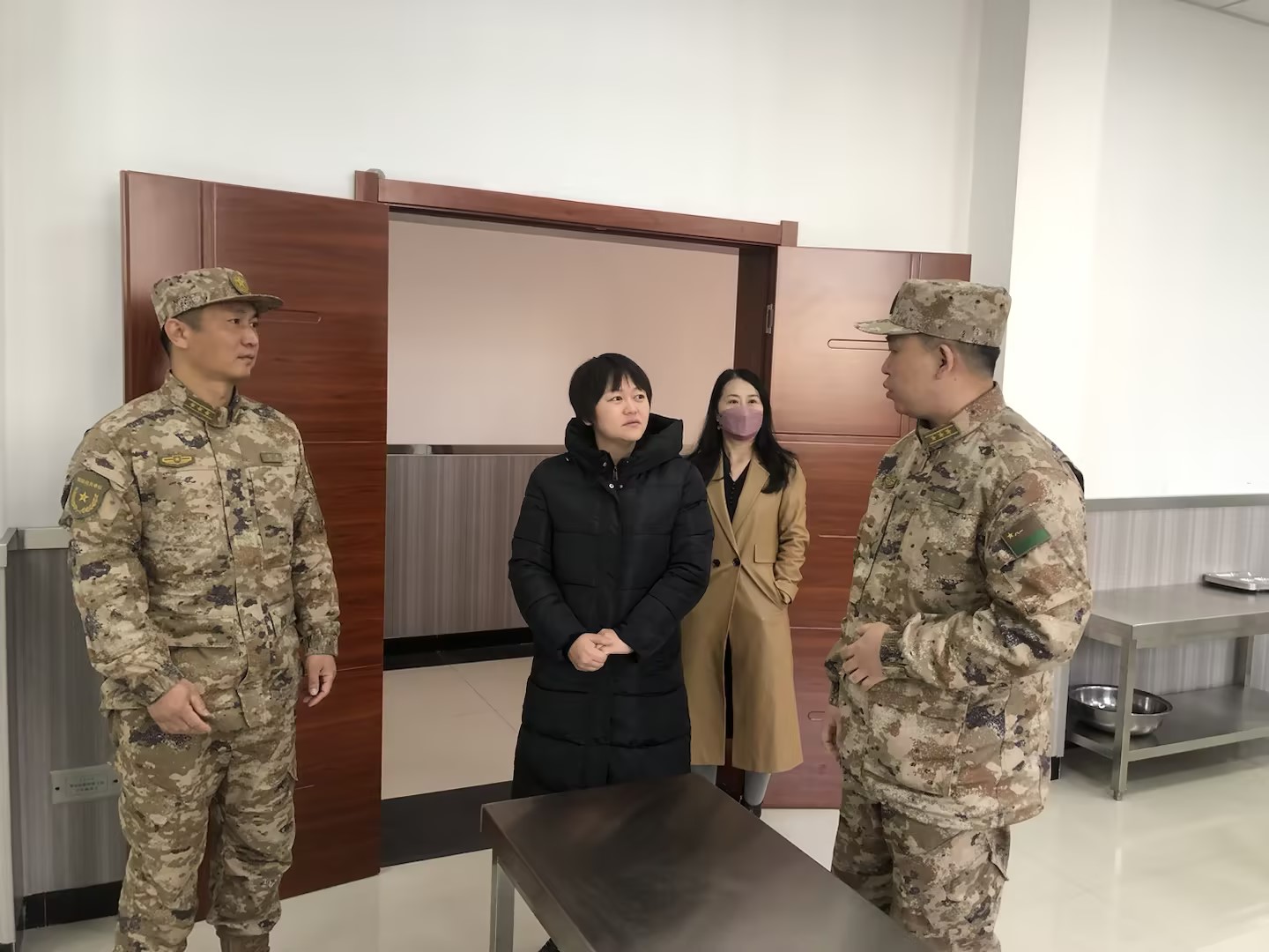 欢送仪式后,师帅与参军入伍新兵和前来欢送的家长们进行了深入的交流和沟通,并合影留念。随后参观了训练营区的宿舍及餐厅。