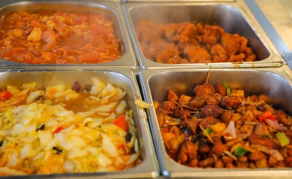 餐品有卤鸡腿、鸭腿、鸡翅、油焖大虾、口水鸡等每餐不重样今天中午的免费加餐是卤鸡腿+鸡蛋为大家提供充足的蛋白质。