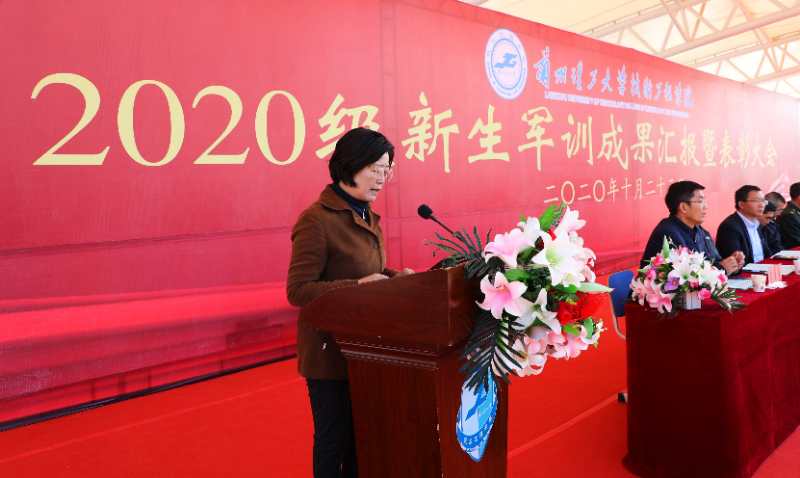 汇报表演后,学校对新生军训先进集体和优秀个人进行了表彰。2020级新生康佳作为军训优秀学员代表进行了发言,她表示要在今后的学习中发扬军训精神,不断向着目标迈进,给家长、老师、更给自己交上一份满意的答卷。