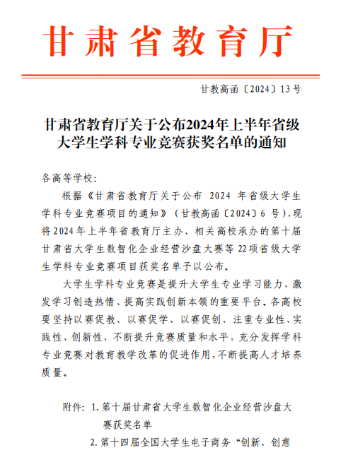 大学生学科专业竞赛是提升大学生专业学习能力、激发学习创造热情、提高实践创新本领的重要平台。据悉,2024年上半年,甘肃省教育厅共举办了包括2024年第十七届全国大学生先进成图技术与产品信息建模创新大赛甘肃赛区选拔赛等在内的22项省级大学生学科专业竞赛。充分发挥学科专业竞赛对教育教学改革的促进作用,不断提高人才培养质量。