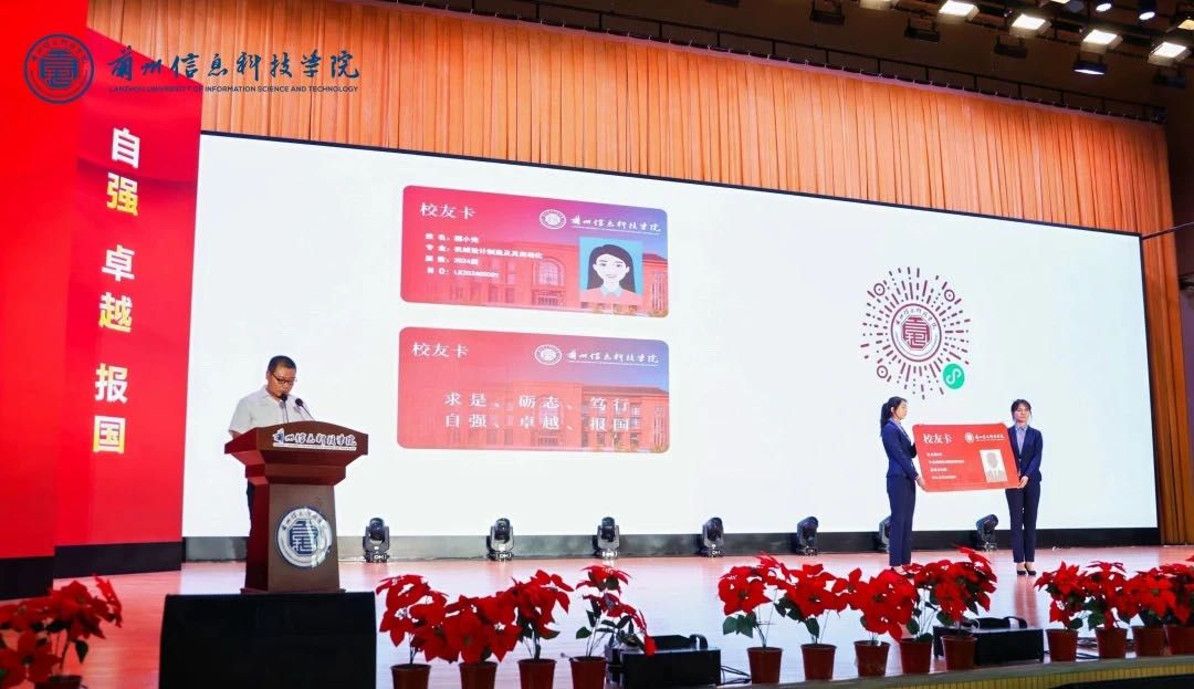 在校生代表、校学生会主席赵文彤在发言中表达了对学长学姐的祝福。“明朝即长路,惜取此时心”,他号召在校生们要顽强拼搏,刻苦努力,向学长学姐看齐,展开自己的华丽篇章;优秀毕业生代表、考取澳大利亚新南威尔士大学(QS世界大学排名19位)硕士研究生的程康宁在发言中感谢老师对待学术的严谨态度和理性的思考方式,以此成为了他学习的榜样,庆幸在兰科遇上了很多志同道合的同学。他希望同学们始终牢记“求是、砺志、笃行”的校训和“自强、卓越、报国”的精神,为社会的进步和发展贡献自己的青春力量;健康工程学院食品科学与工程专业2024届毕业生杨璇家长王淑萍女士表达了对学校的感谢,希望同学们能珍惜青年时光,牢记母校师长教诲,在新的人生征程上,持续努力拼搏。毕业生们以鲜花为媒,向到场的家长代表送上诚挚的感谢与敬意。同时进行了校友卡发布仪式,至此,同学们完成了从学子到校友的身份转变。