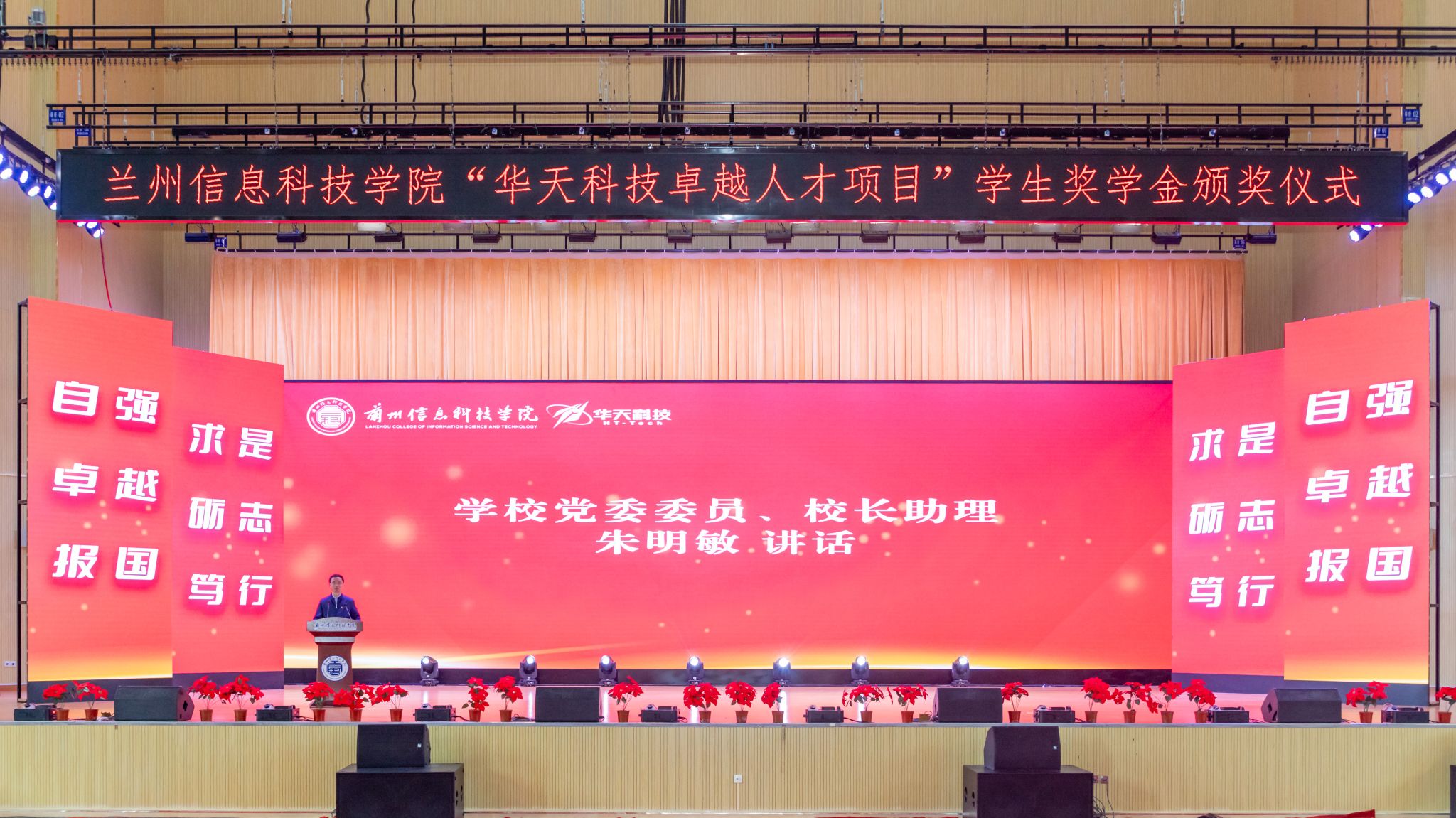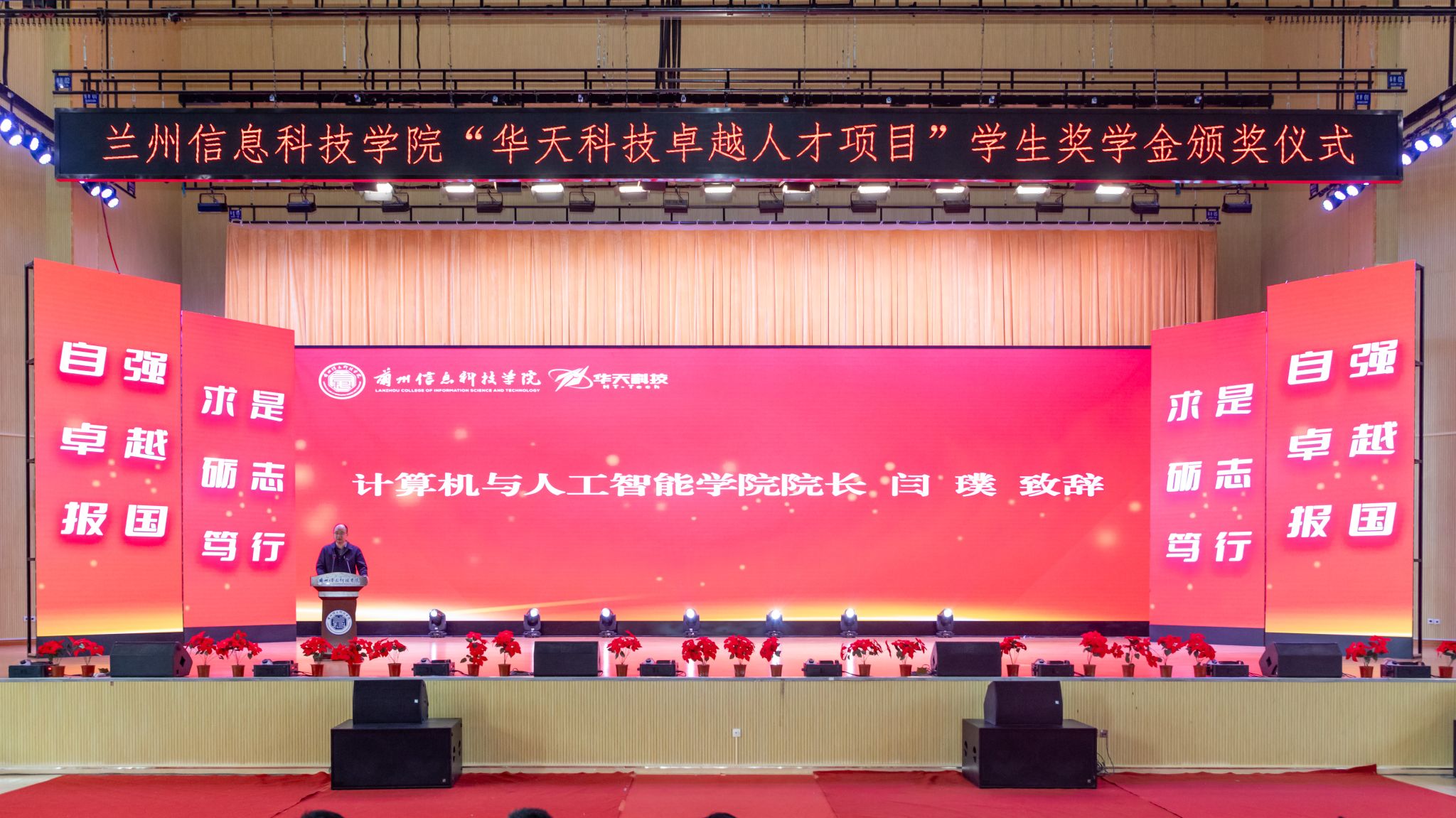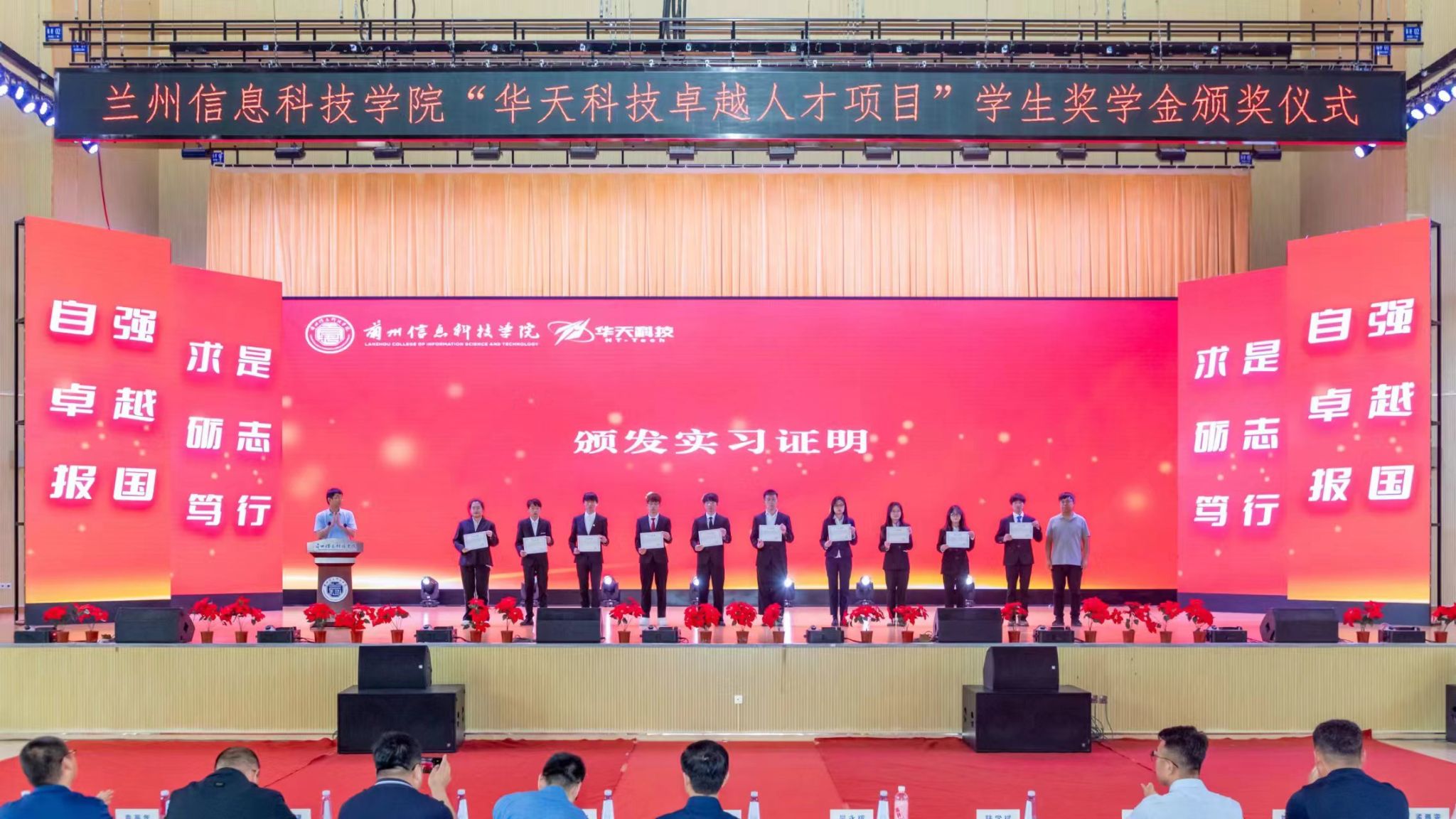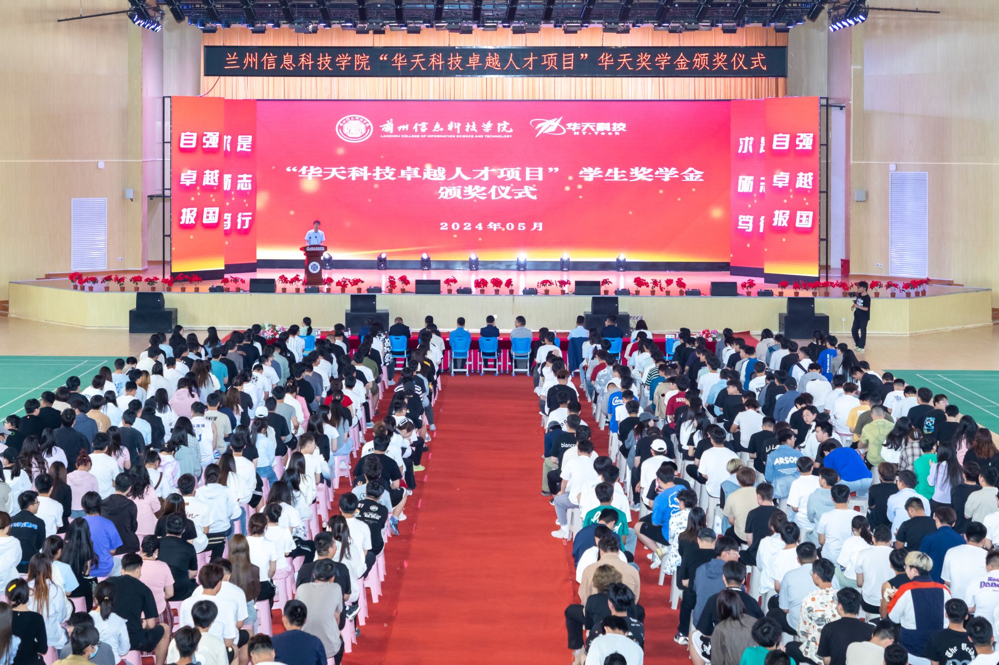 5月30日,beat365在线唯一官网在体育馆召开“华天科技卓越人才项目”学生奖学金颁发仪式,天水华天科技股份有限公司人力资源部部长刘平安,天水华天科技股份有限公司校企合作办副主任吴永辉,天水华天股份股份有限公司人力资源部招聘主管刘成斌,学校校长助理朱明敏,计算机与人工智能学院院长闫璞,智能装备学院院长陆学斌等出席了本次活动,学校相关教师及2024、2025届学生代表参加了本次活动。