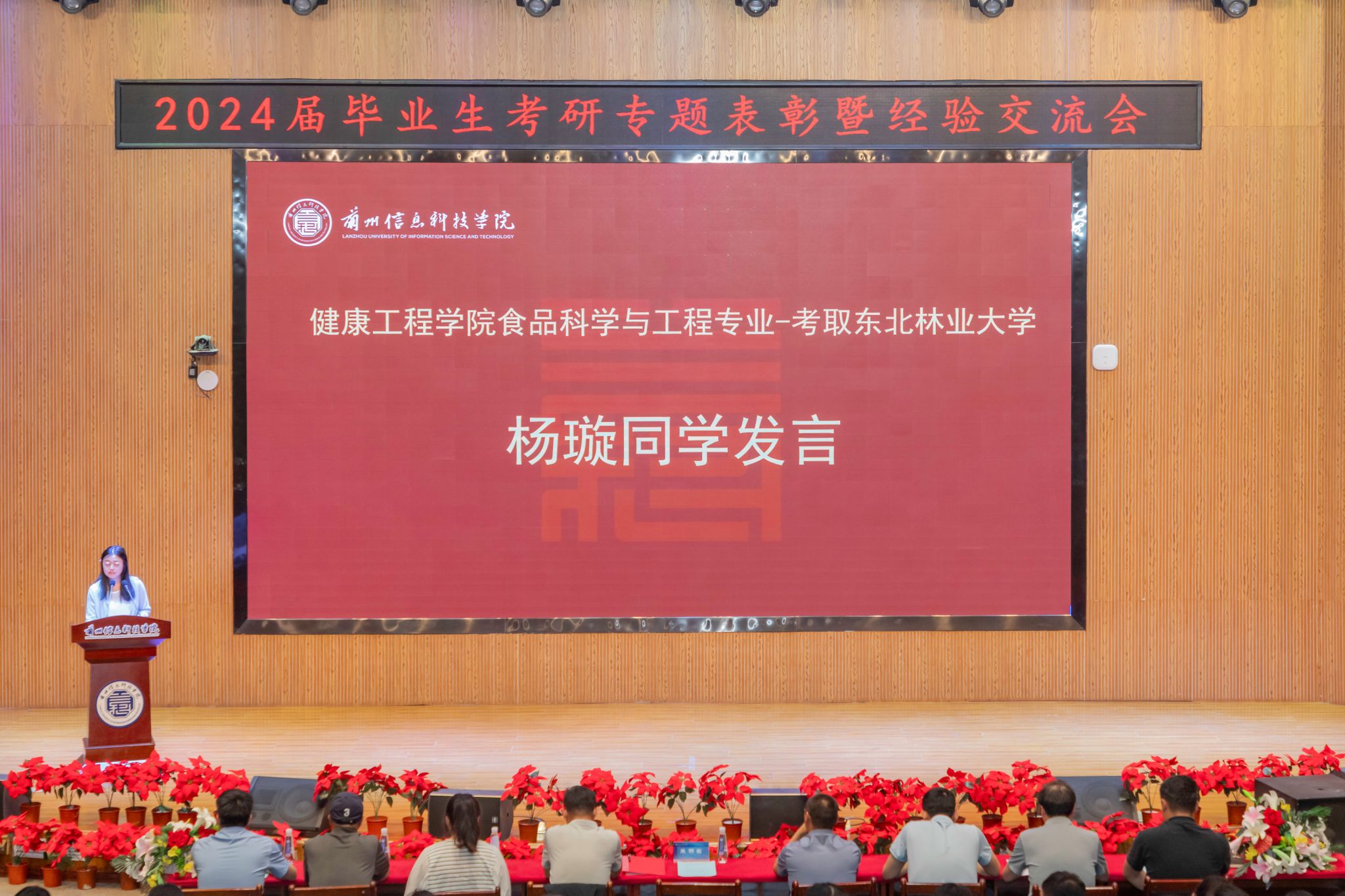 会议宣读了《关于表彰奖励2024届毕业生考取硕士研究生的决定》,校长助理朱明敏为全体考取硕士研究生的同学颁奖。