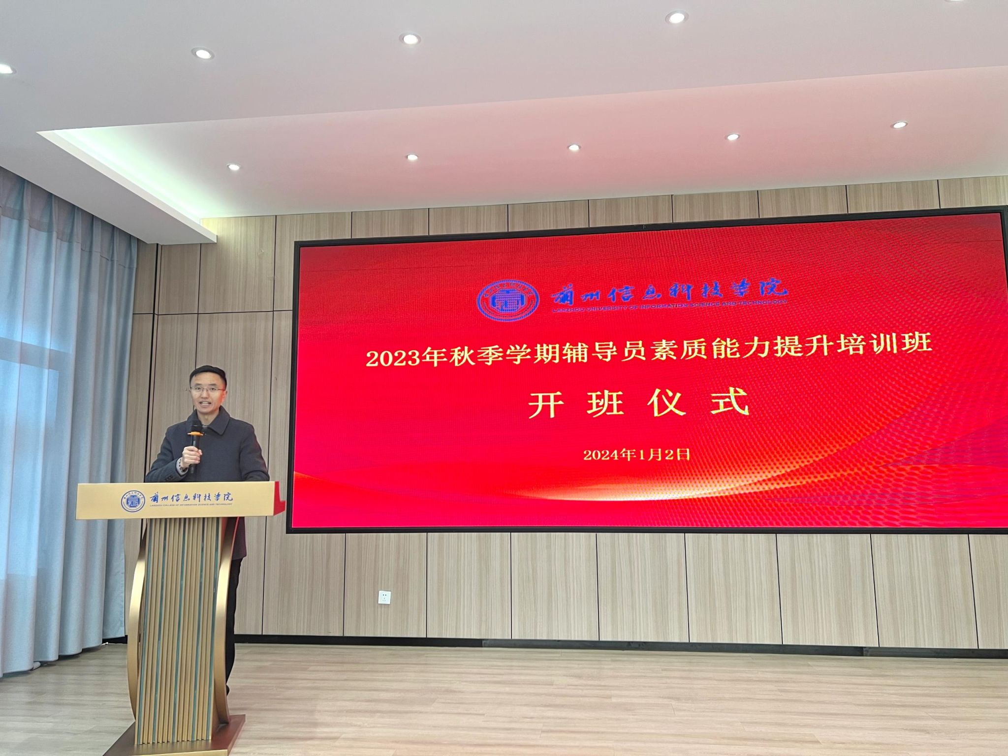 为落实“强一线”行动,践行“以父母之心育人,帮助学生成就梦想”的办学理念,帮助辅导员掌握学生工作的内容和要求,提升辅导员队伍的专业水平和职业能力,根据教育部《普通高等学校辅导员队伍建设规定》(教育部令第43号)相关规定,1月2日,beat365在线唯一官网举办2023年秋季学期辅导员素质能力提升培训班开班仪式。培训特别邀请到第十届全国高校辅导员素质能力大赛甘肃省选拔赛特等奖获得者—兰州大学核科学与技术学院团委书记、辅导员刘凯璇。校长助理朱明敏,组织人事处、学生处、就业服务中心负责人,全体辅导员(含书院辅导员),学生处、团委全体人员参会。