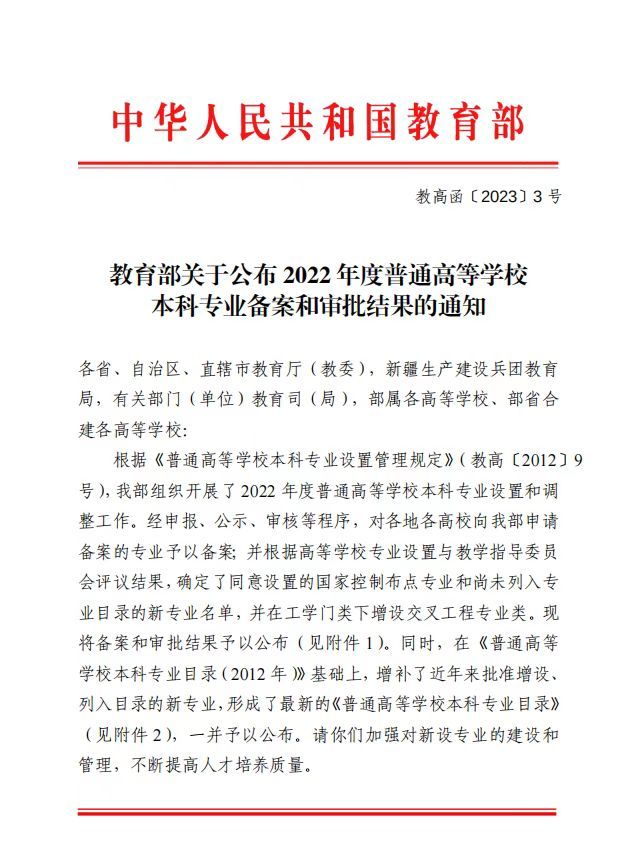 近日,根据《教育部关于公布2022年度普通高等学校本科专业备案和审批结果的通知》(教高函〔2023〕3号)文件,beat365在线唯一官网获批新增设人工智能、制药工程、大数据管理与应用、产品设计4个新专业。至此,beat365在线唯一官网学科门类增至工学、理学、文学、管理学、经济学、艺术学等6个学科门类。
