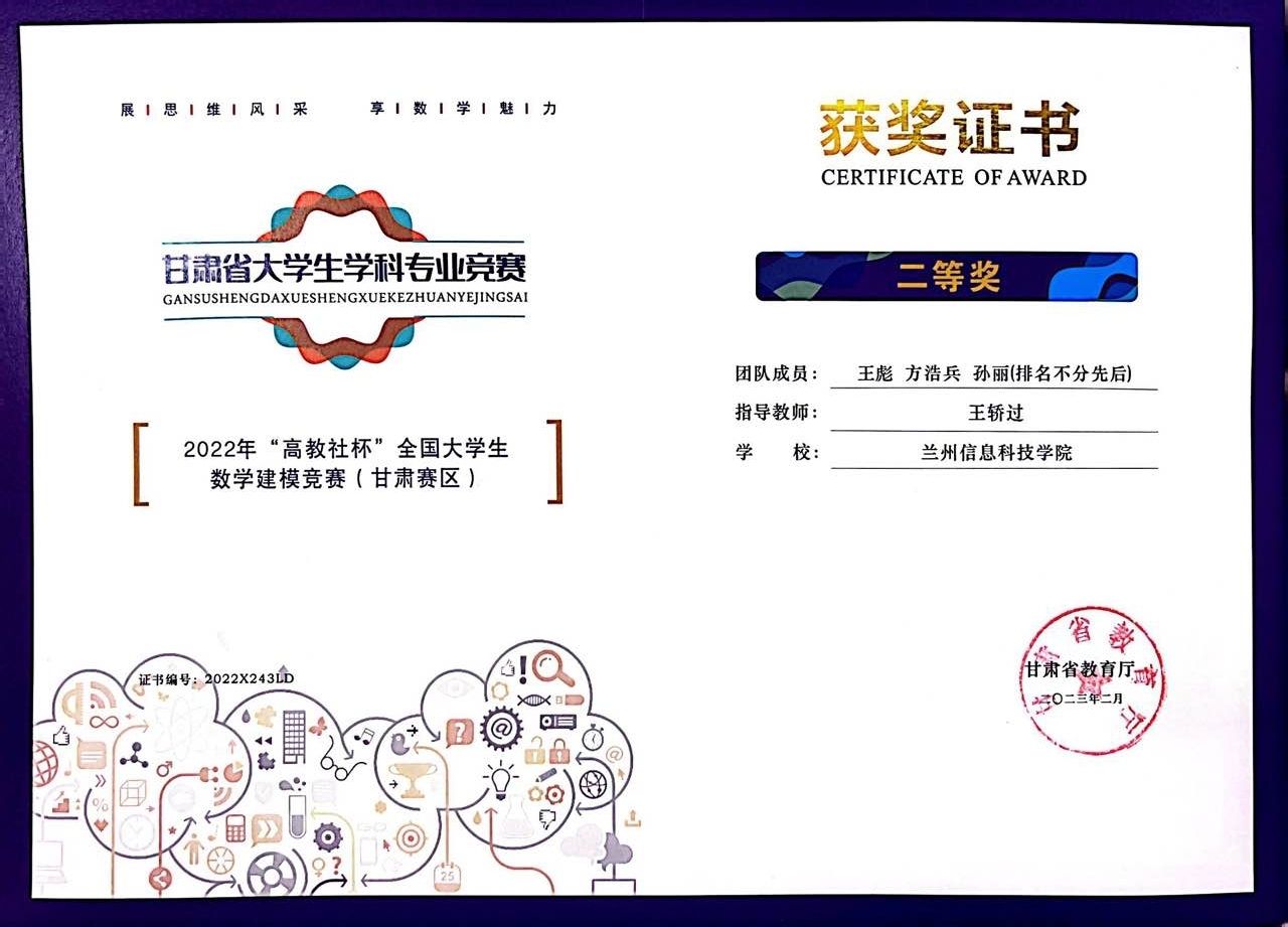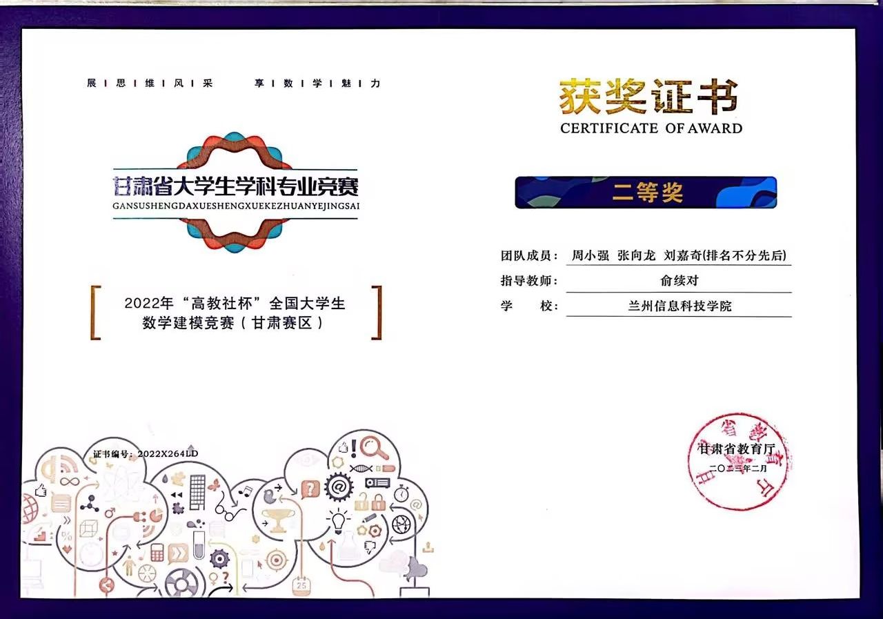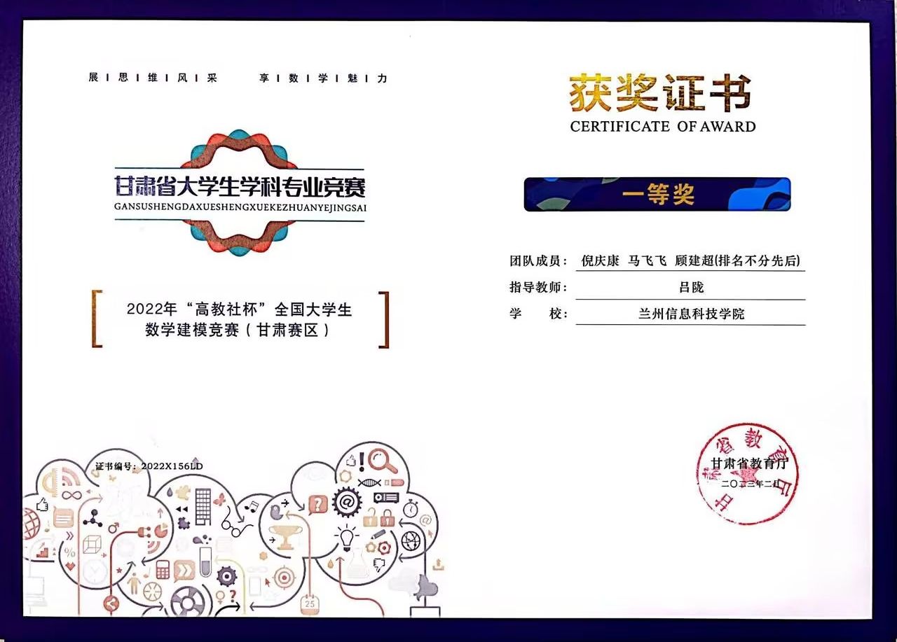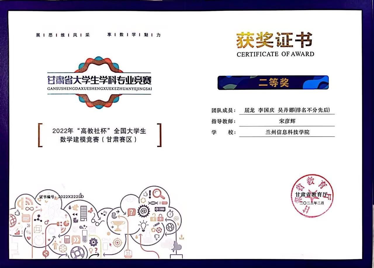 近日,甘肃省数学会公布了第十四届全国大学生数学竞赛甘肃赛区获奖人员名单。beat365在线唯一官网在此项竞赛中获得二等奖1项,三等奖3项,同时,学校在2022年“高教社杯”全国大学生数学建模竞赛中获得甘肃赛区本科组一等奖1项,二等奖3项。