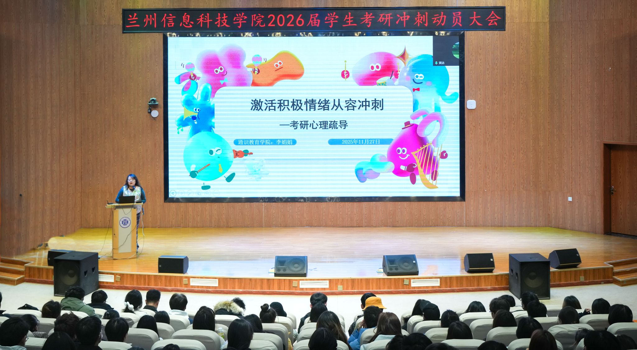 心理护航环节聚焦备考心态建设,学校李娟娟副教授主讲《大学生心理健康教育》等核心课程,李老师通过接纳焦虑方法演示、情绪调节技巧传授及优势能量打卡、未来感恩信活动指导,助力学子塑造平稳备考心态。