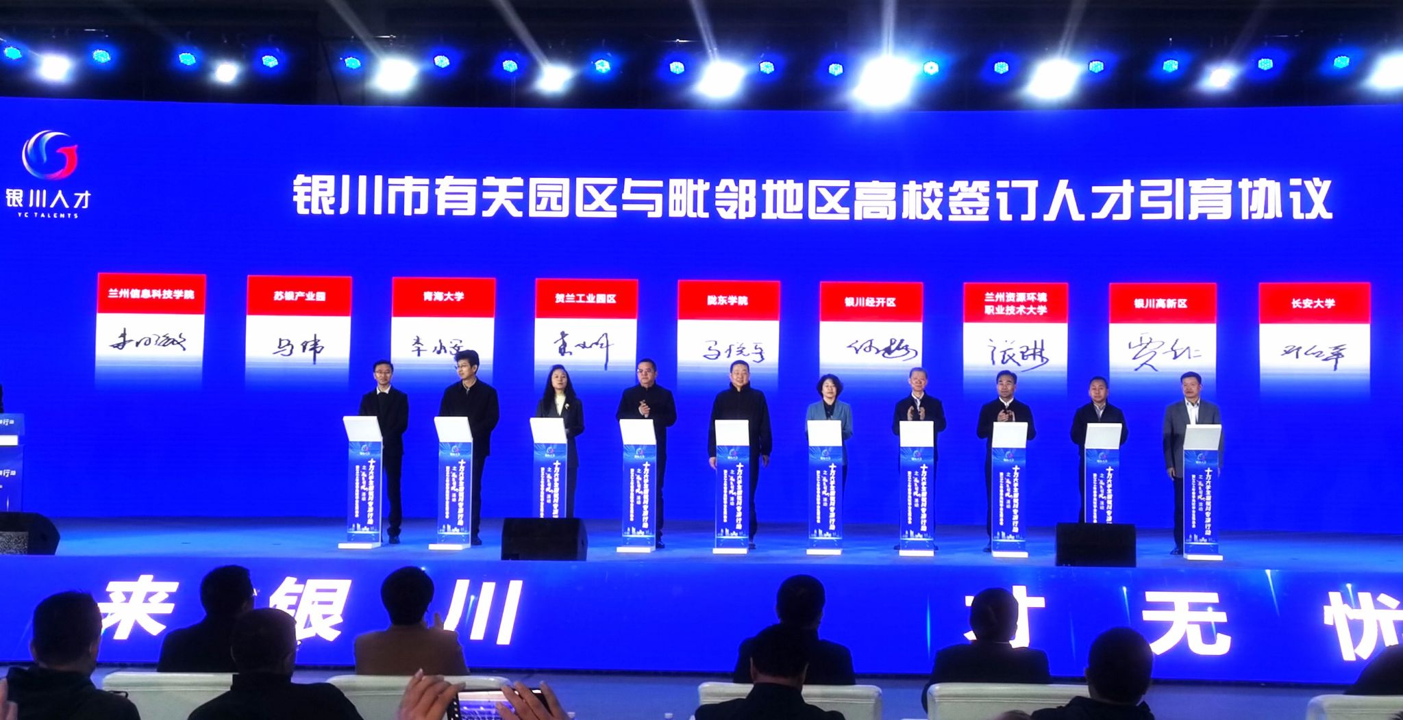 朱明敏代表beat365在线唯一官网与银川经济技术开发区、银川苏银产业园签订《校地合作协议》,开启双方“资源共享、优势互补、互利共赢、融合发展”的校地合作新篇章,他与企业代表、在银留银优秀青年人才代表交流发言,对学校概况、人际交流合作、校政企协同等方面进行全方位宣介。
