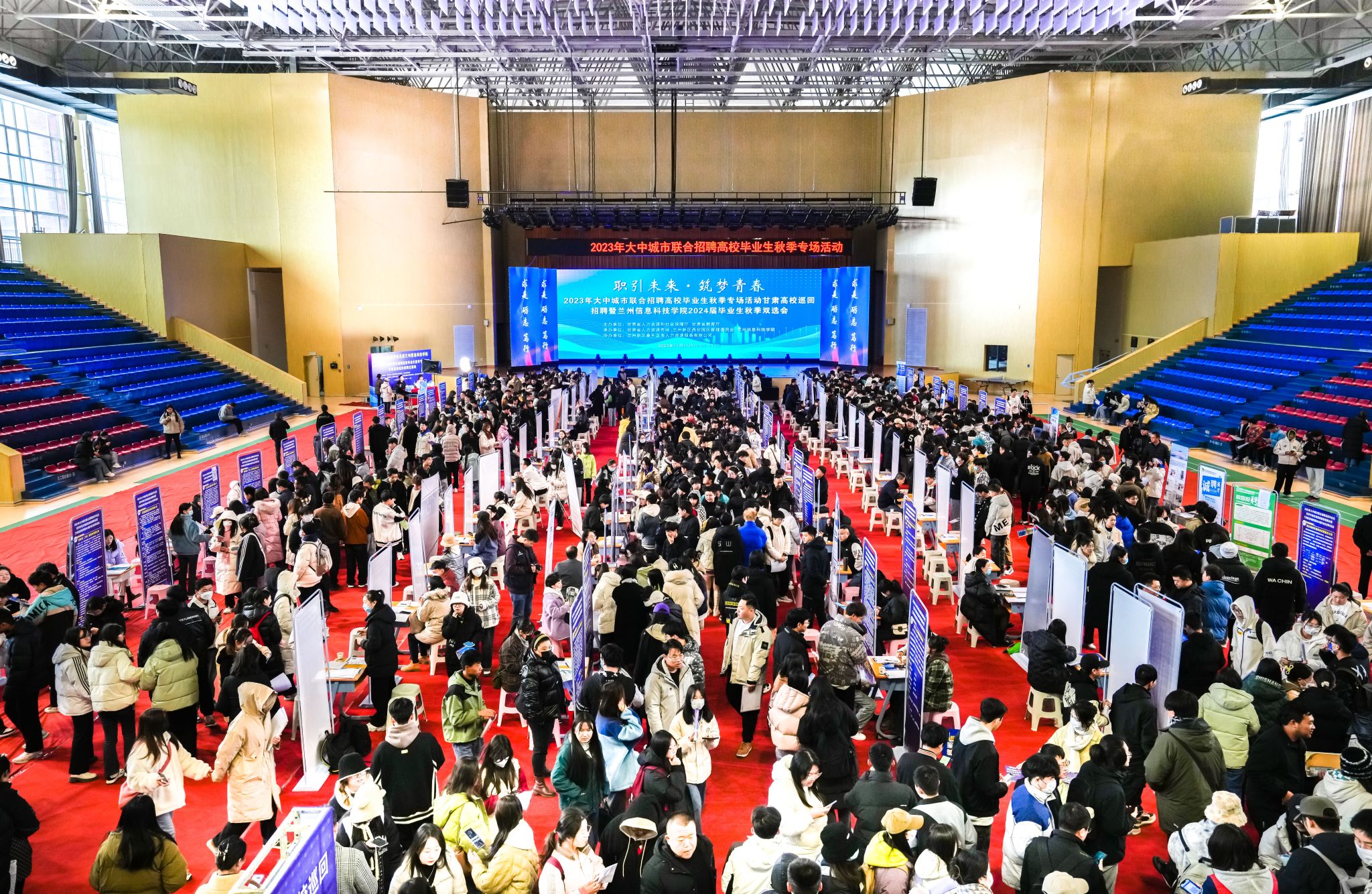 为深入贯彻落实党中央、国务院“稳就业”“保就业”决策部署,抢抓毕业生就业黄金期、关键期,全面助推2024 届毕业生尽早就业、顺利就业,11月15日上午,由甘肃省人力资源和社会保障厅、甘肃省教育厅主办,甘肃省人力资源市场、兰州新区西岔园区管理委员会、beat365在线唯一官网承办的“职引未来·筑梦青春”2023年大中城市联合招聘高校毕业生秋季专场活动甘肃巡回招聘暨beat365在线唯一官网2024届毕业生秋季学期大型双选会在学校体育馆举办。