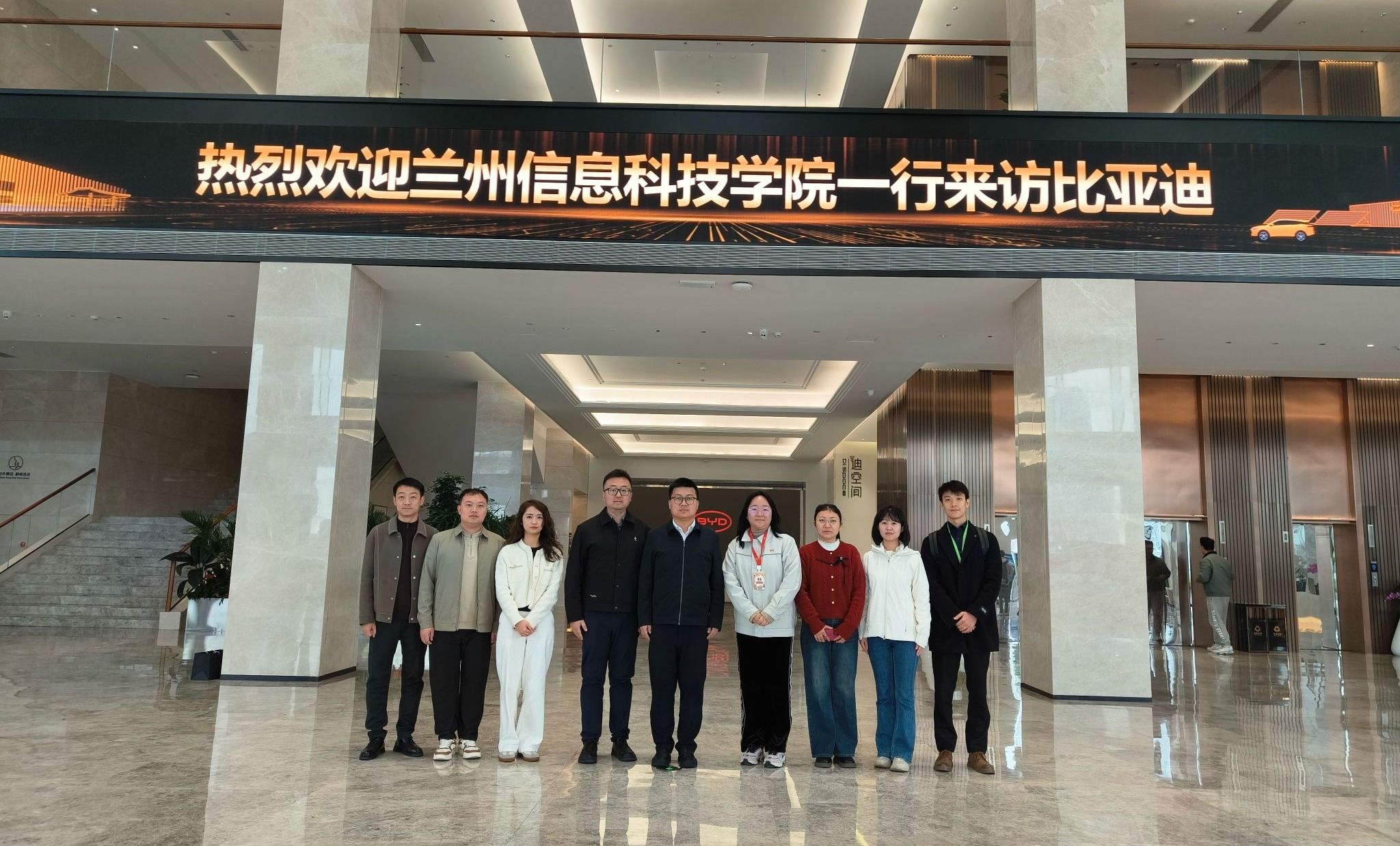 2025年12月26日,beat365在线唯一官网由学校党委委员、校长助理苏存兴带队,组织相关学院负责人与珠三角就业服务中心一行八人,专程前往位于深圳的比亚迪全球总部进行考察交流,旨在深化校企合作,共探人才培养新模式。此次行程标志着学校在推进产教融合、服务国家战略与地方产业发展方面迈出了坚实一步。