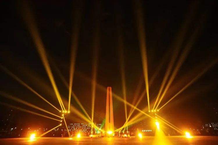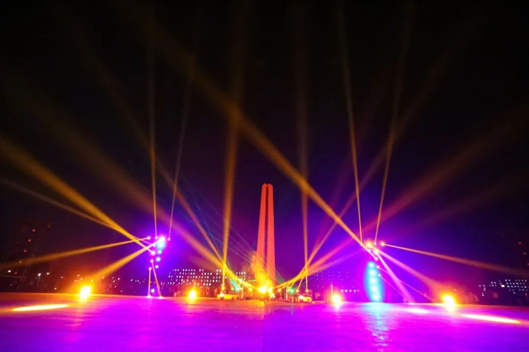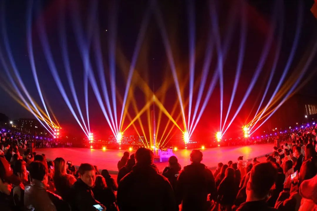 一道道光束像调皮鬼冲向夜空,音乐响起,灯光瞬间化身最潮的舞者,它们在夜空中自由舞动,编织成一首关于光与梦的赞歌。