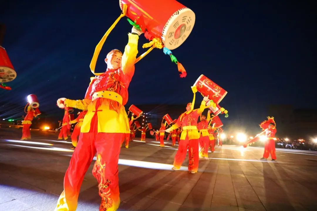 他们奋力击鼓,每一次挥臂,都裹挟着万钧之力,每一次落槌,都让大地为之震颤,一锤下去,鼓声似滚滚春雷气势磅礴,向大家诉说着独属于西北的故事。