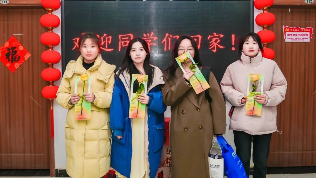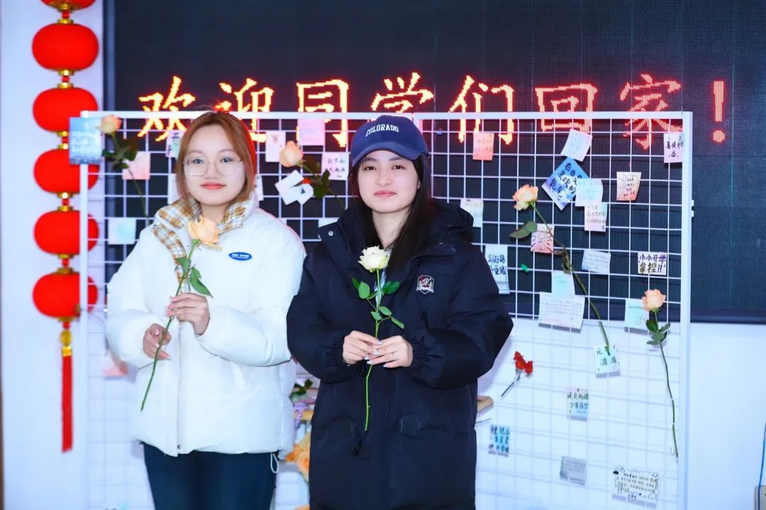 公寓大厅各种暖心布置,氛围感拉满,门把手上祝福书签,原来是第一个回来的拿到了,是她们兑换到了鲜花。