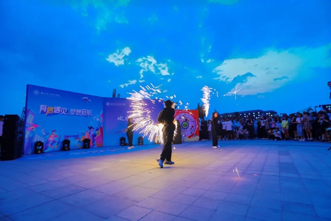 今晚的校园,还汇聚了各社团表演,学校有红叶轮滑协会、蓝凌艺术团,精武运动协会、翰墨苑书协会等50+社团,按照“学科+专业社团,专业+技能赛事,赛事+兴趣爱好”建设体系,相信2024级学子们定能在这里找到符合自己兴趣爱好的平台。