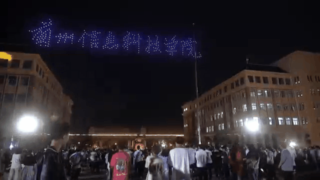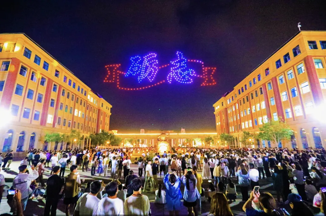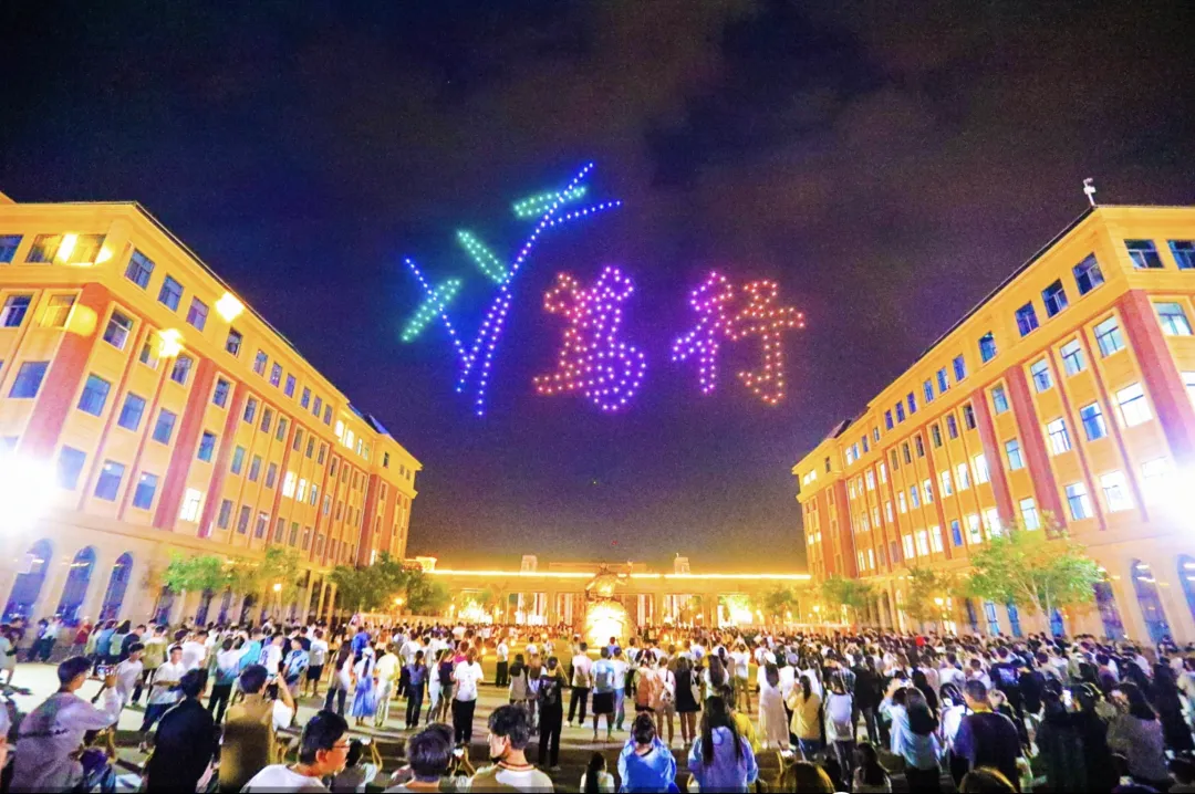 “求是”“砺志”“笃行”当无人机排列成这6个字的时候,再次引发了人群中阵阵欢呼声,这几个字如同璀璨星辰,引领着一代又一代学子们,在知识的海洋中遨游,在人生的道路上坚定前行。
