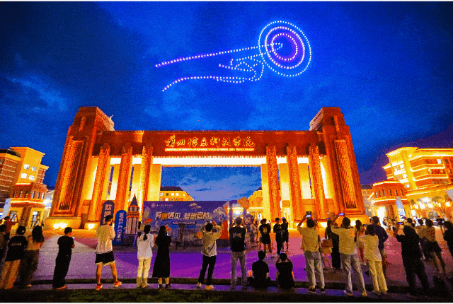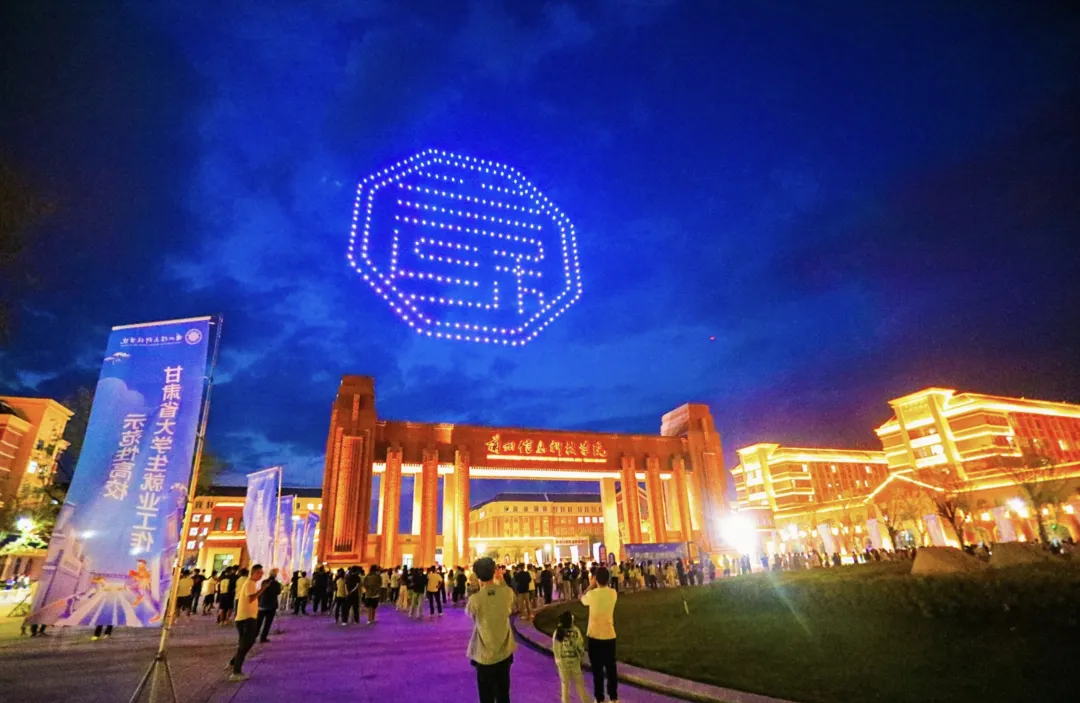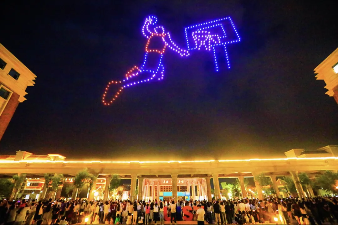 在苍茫无垠的西北大地,一条古老的商路横穿而过,那是一段传奇,也是连接东西方文明的辉煌篇章,无人机组合成的“沙漠骆驼”形状,用表演向来自全国各地的学子们,叙述着这段过往的繁华。