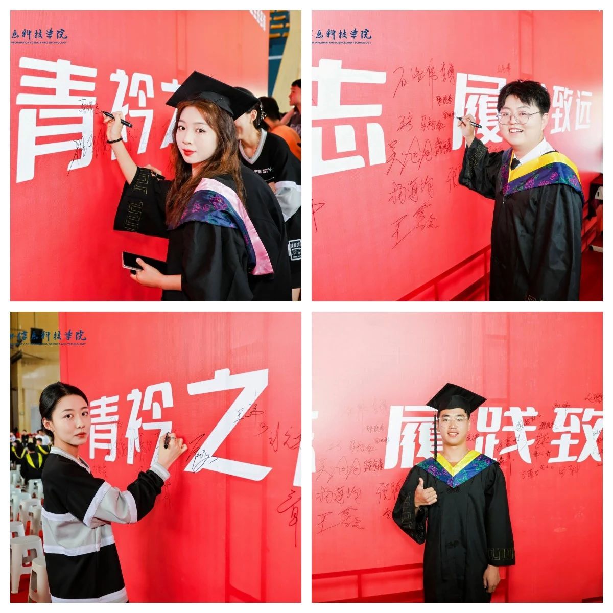 典礼场外,学校精心布置了“毕业留念签名墙”和“时光胶囊封存点”,突出青春气息,营造温馨氛围,彰显人文关怀,为毕业生们珍藏回忆、定格美好。在温馨而热烈的氛围中,2024届毕业生正式告别镌刻着他们青春足迹的校园,带着师长的祝福和同学间的深厚情谊,踏上新的旅程,迈向更大、更高、更远的舞台,在各自的岗位上发光发热,在祖国各地书写属于自己的人生华章。