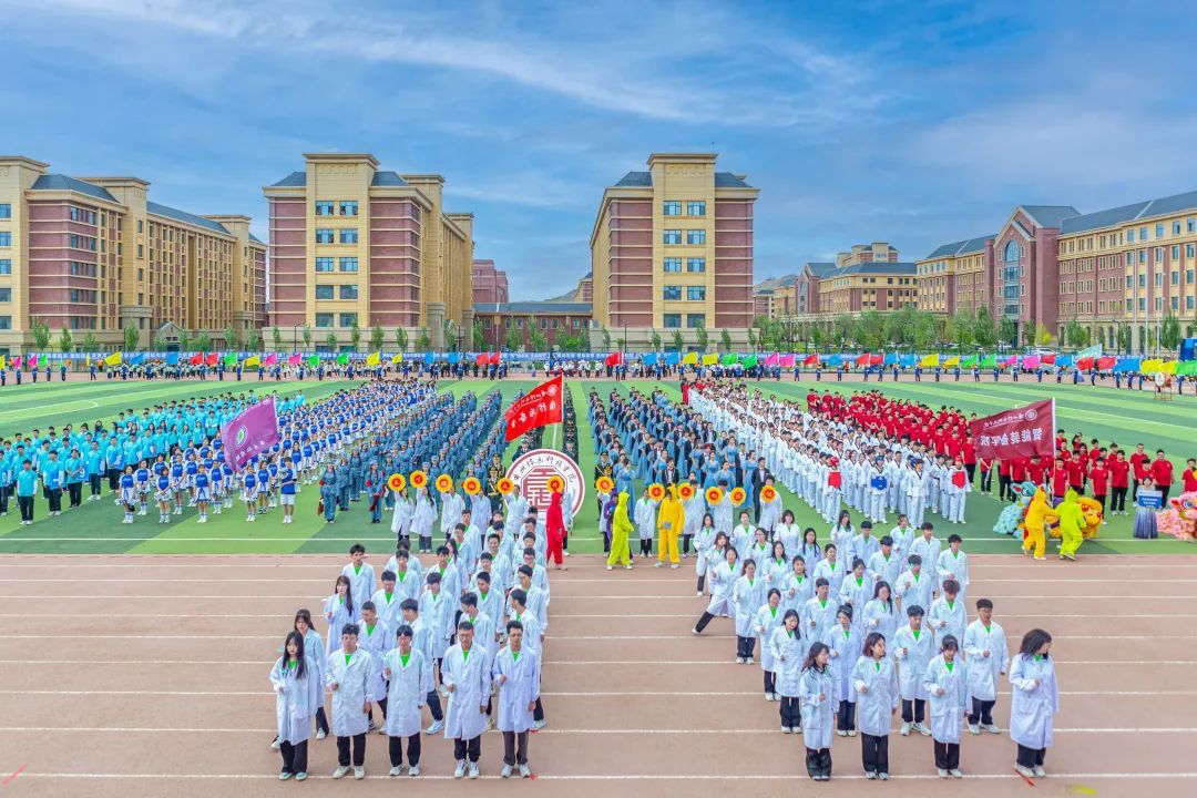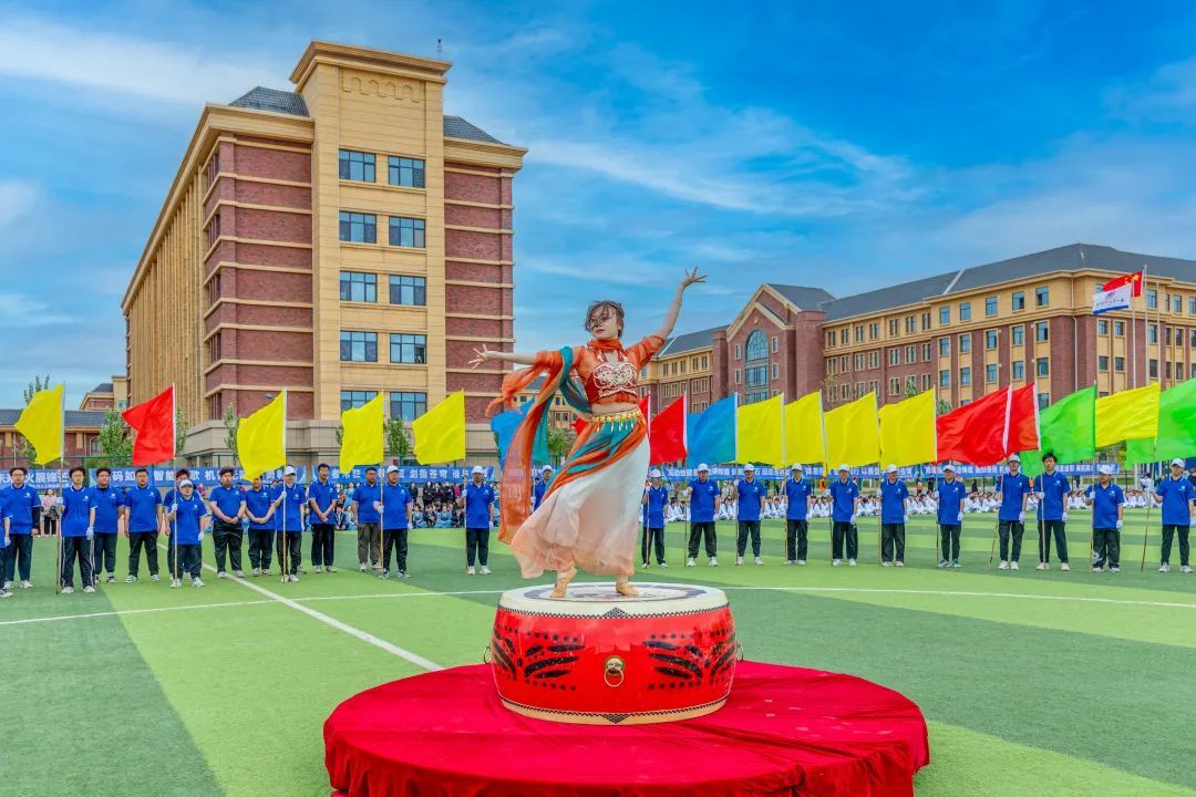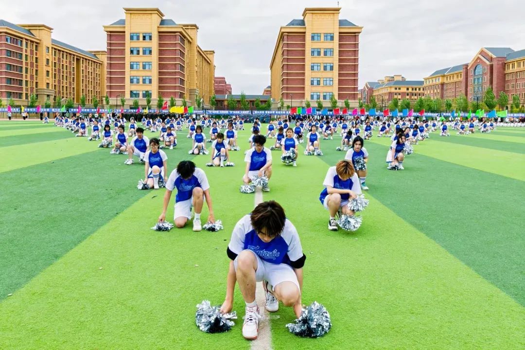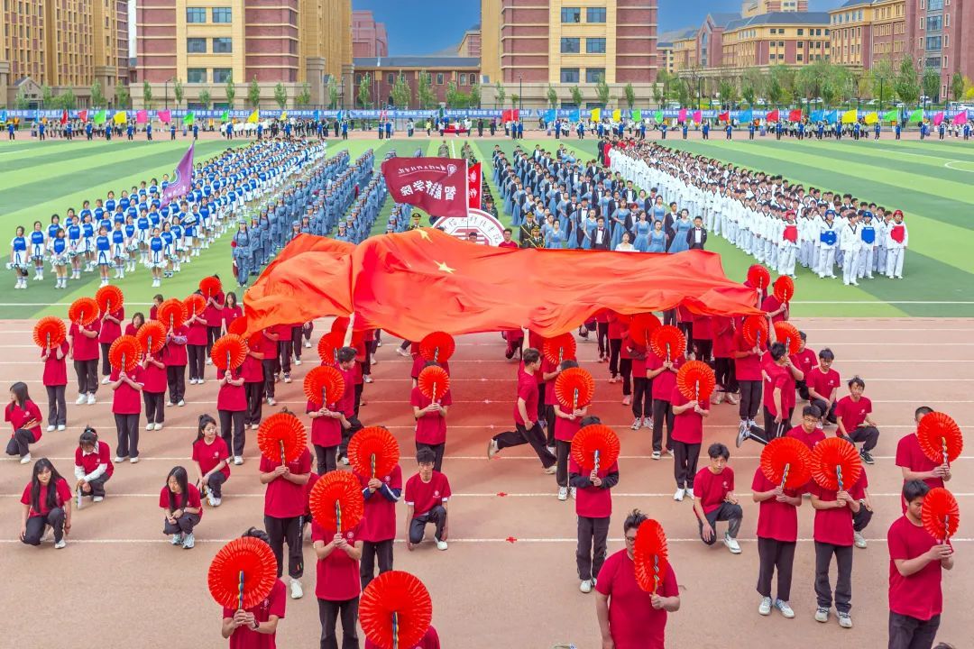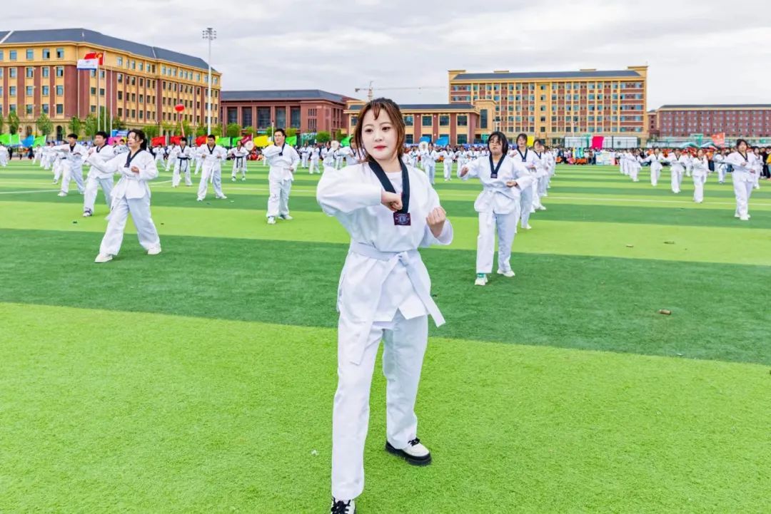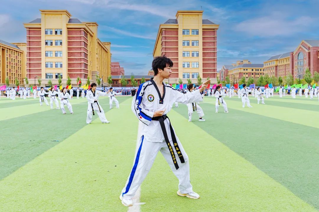 博学笃行、塑体铸魂,他们年轻朝气,眉宇间尽展少年雄健,社团联合会组成的三百人跆拳道队伍,行云如水、刚劲有力;手中花球翻飞,轻盈的舞步、动感的节拍诠释着飞扬青春与无限美好;整齐划一的扇子,犹如流转的诗意,轻轻摇曳,诉说着红色故事,每一挥都是对传统文化的深情致敬,每一转都是对青春岁月的美好献礼。
