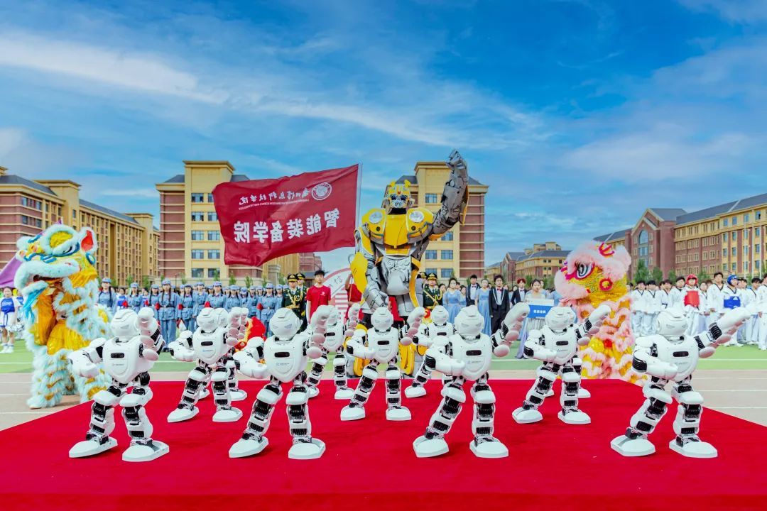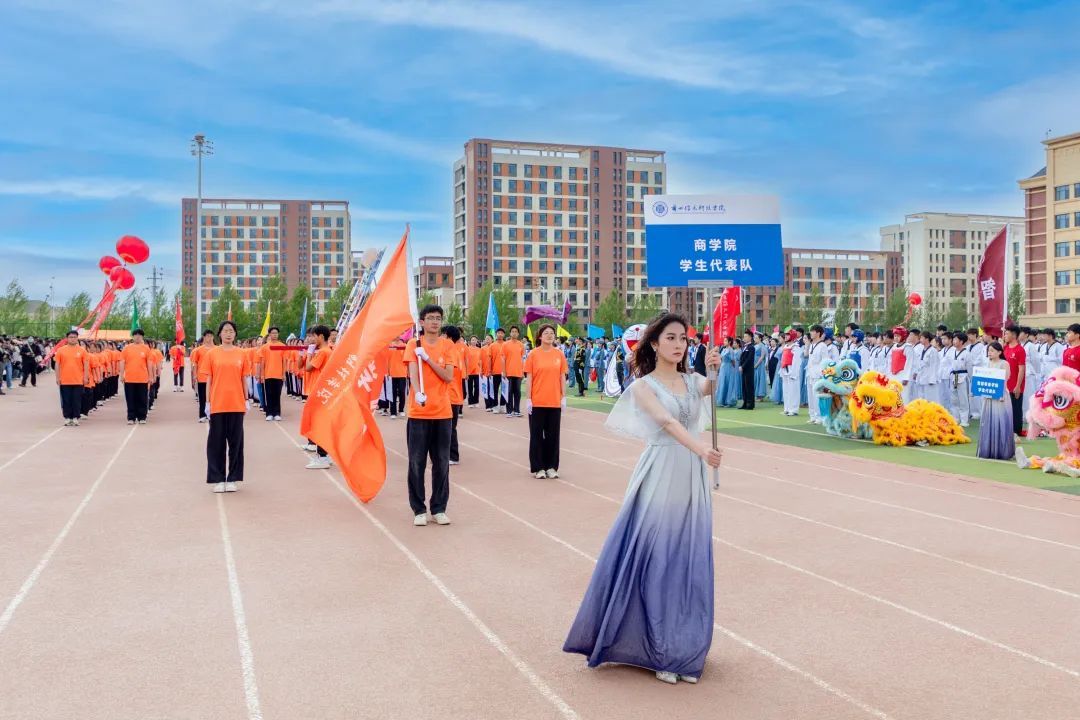 各院系、教职工、表演、彩旗等19个方队,迈着铿锵有力的步伐,神采飞扬地走过主席台,用激情嘹亮的口号和各具特色的表演展现出兰科师生激情澎湃、朝气蓬勃的青春风采。智能装备学院优必选智能机器人产业学院的小机器人也亮相学院表演方阵。