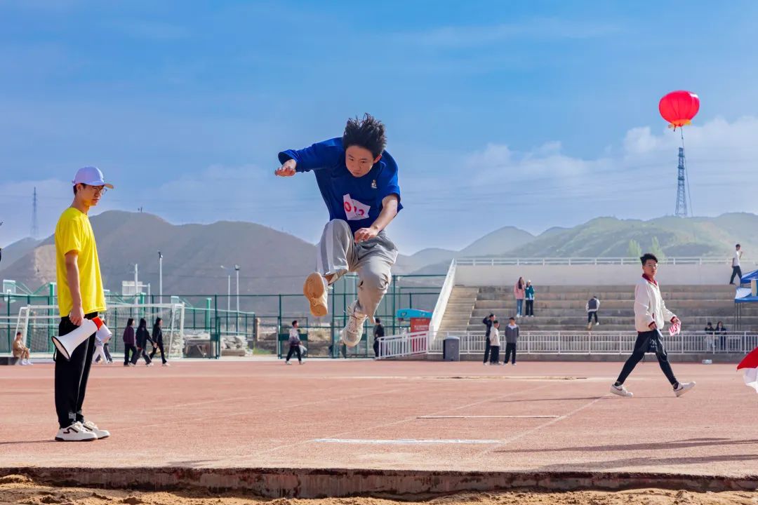 100m、200m、400m、800m、起跳、跨越、冲刺、交棒……每一米都丈量着同学们对运动的热爱,每一步都印证着同学们对胜利的渴望,汗水凝聚力量,不断超越自我、不断突破极限,此刻,田径场便是他们的舞台,跑道上不断向前奔跑的他们,起身腾跃的他们无比耀眼!