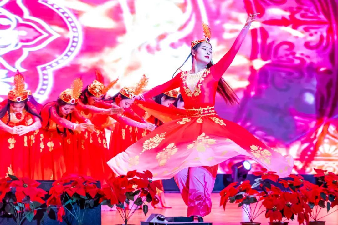 祁连山脚下,疏勒河水旁,逐水草而居,尚彩虹而衣,《金姑娘银姑娘》《石榴红了》舞起来。与祖国同心、拥祖国前行,以《中华颂》养中华浩然之气,育民族精神之魂。