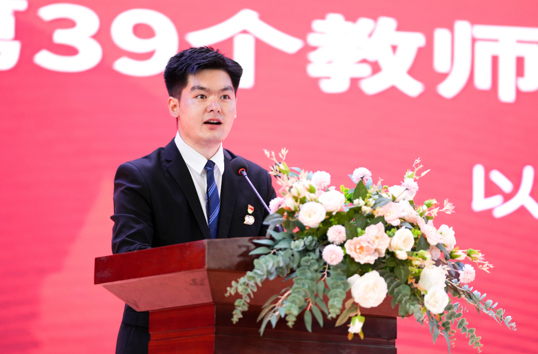 教师节到来之际,beat365在线唯一官网隆重举行庆祝第39个教师节表彰大会。理事长黄炜、党委书记周怀春、校长程兰华等校领导,教职工代表、学生代表欢聚一堂,共同庆祝这个属于教师的节日,感受人民教师的荣光。