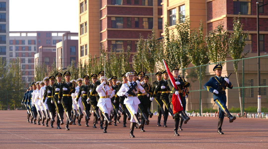 晨曦青芒,迎着第一缕朝阳学校国旗护卫队身着“海、陆、空”三军新式礼兵服踏着整齐划一的步伐、怀着赤诚的敬意军姿挺拔、目光如炬、神采奕奕昂首挺胸走向国旗台肩上扛着的是鲜艳的五星红旗心中燃烧的是责任与热爱。