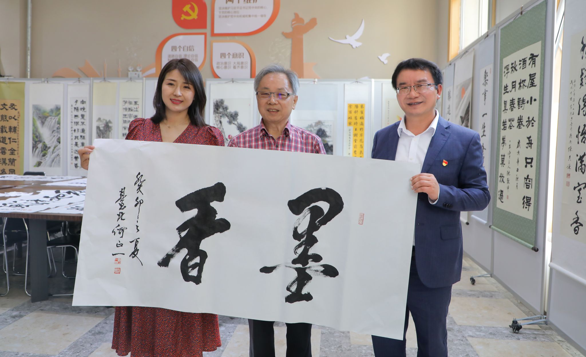 活动现场,百余幅优秀书画作品集中展示的同时,更有书画名家现场指点。来自两岸的十多名书画名人泼墨挥毫、舞动丹青进行书画创作,一幅幅书法作品笔酣墨饱,力透纸背,片纸余墨,尽现赤子之心。师生们围聚一起,通过书画文化交流互鉴、心灵互通共融,近距离感受着书画艺术的独特魅力,探索两岸书画艺术发展和共同的历史文化遗产,进一步增强了民族认同感、自豪感和归属感。