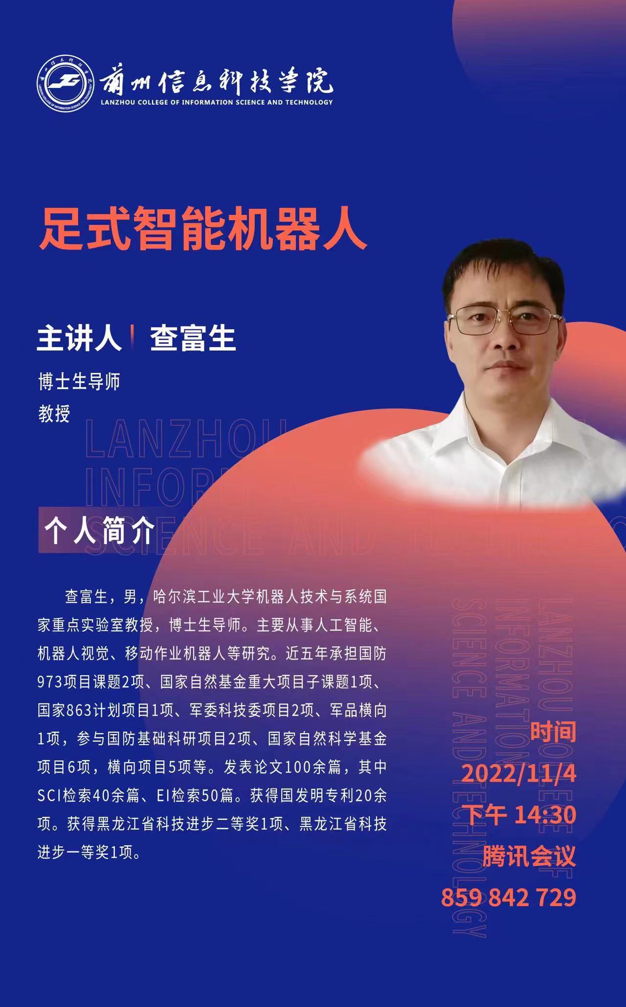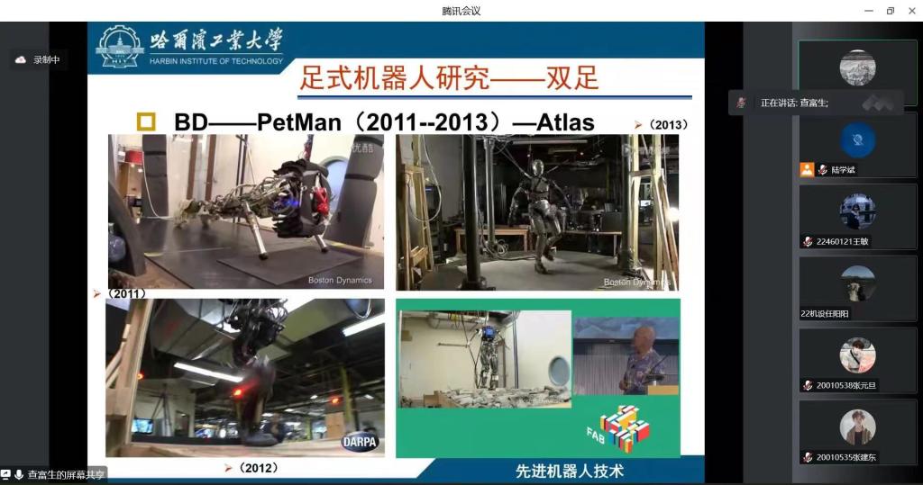 11月4日,哈尔滨工业大学博士生导师查富生教授应邀为beat365在线唯一官网师生作学术专题报告,讲座主题为《足式智能机器人》。机电工程学院全体无授课任务教师,相关专业300余名学生以线上会议的方式聆听了此次专题讲座。