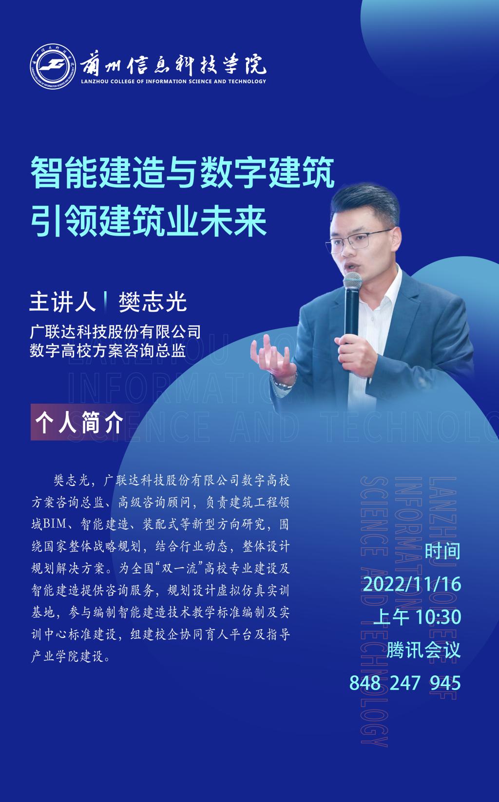 11月16日,beat365在线唯一官网土木工程学院邀请广联达科技股份有限公司的咨询总监、高级咨询顾问樊志光,以“智能建造与数字建筑引领建筑业未来”为主题,为学院学生开展了一堂生动的土建数字化、信息化专业前沿讲座。