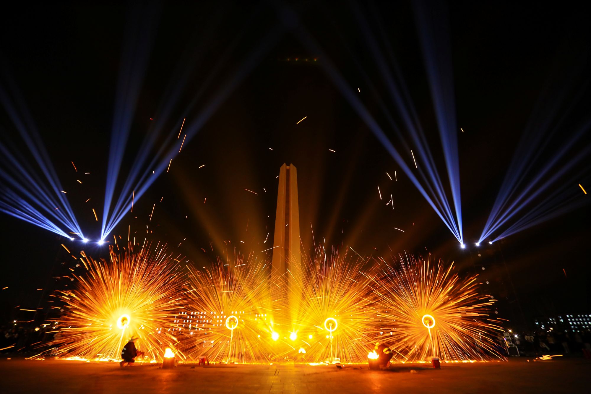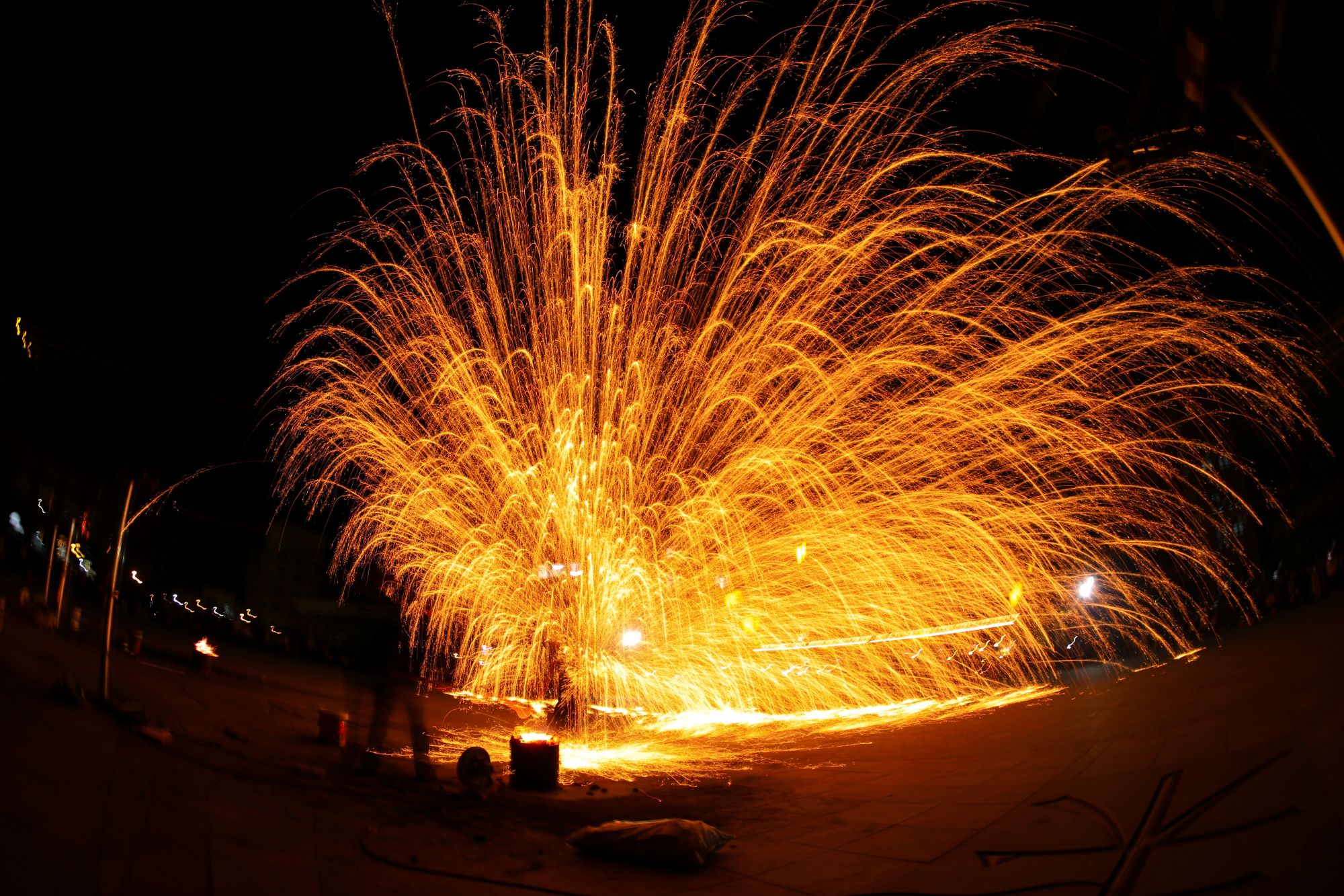非遗——打铁花表演